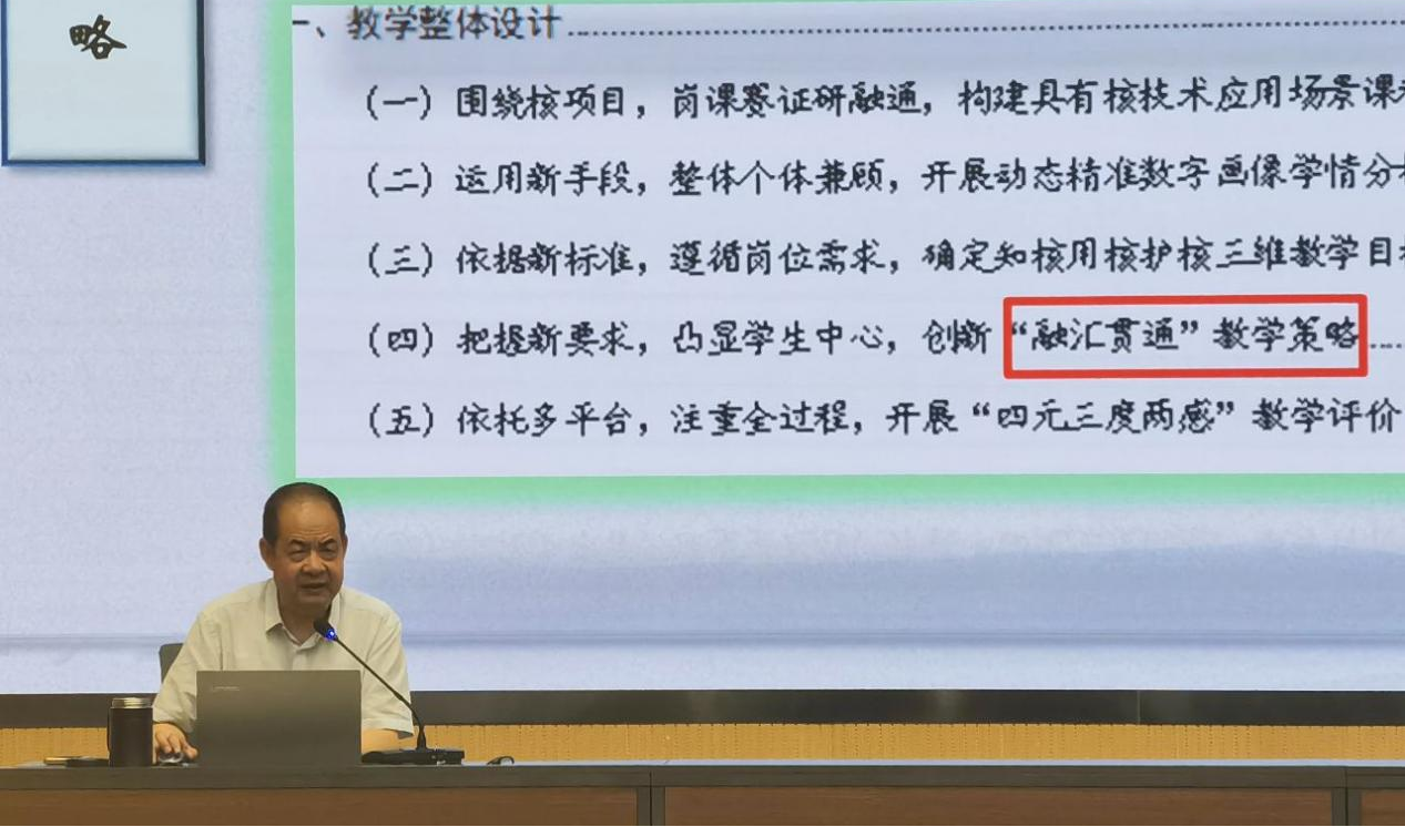 翟存祥以“獲獎(jiǎng)作品是如何打磨的——以2023年核技術(shù)應(yīng)用作品為例”為題,對標(biāo)國家教學(xué)能力大賽標(biāo)準(zhǔn),總結(jié)參賽經(jīng)驗(yàn),對比賽中教學(xué)團(tuán)隊(duì)的組建、參賽項(xiàng)目的選題、人才培養(yǎng)方案的完善、課程標(biāo)準(zhǔn)的制訂、教學(xué)實(shí)施方案和教案撰寫、課堂實(shí)錄視頻的拍攝以及賽場答辯的準(zhǔn)備做了深入細(xì)致的分析。