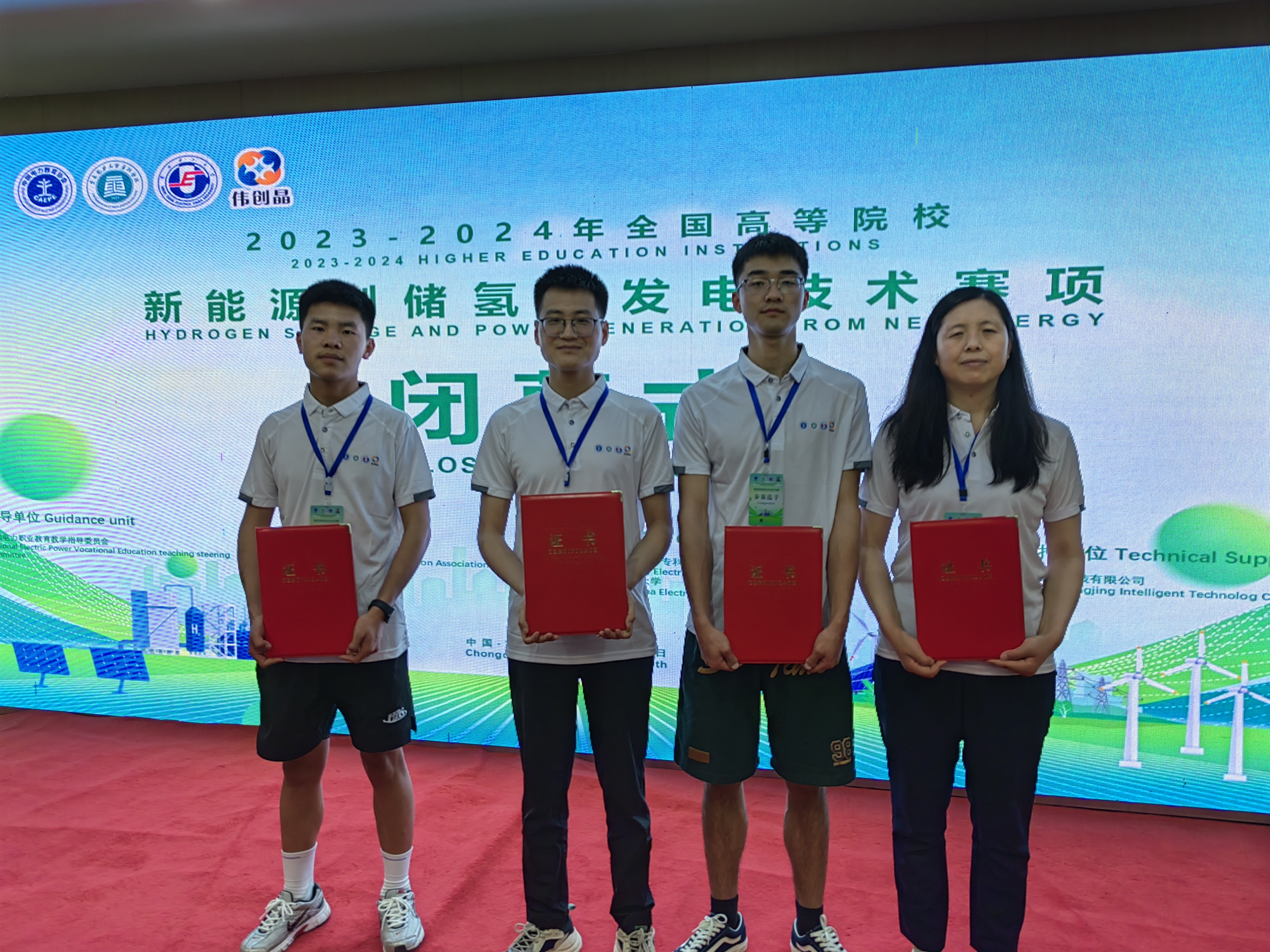 5月17日,全國首屆高等學校新能源制儲氫及發(fā)電技術競賽在重慶電力高等專科學校舉行,本次大賽由全國電力職業(yè)教育教學指導委員會指導,中國電力教育協(xié)會主辦,華北電力大學、重慶電力高等專科學校承辦。全國有22個省市48所高校108支隊伍參賽。參賽采用1名教師和1名學生師生聯(lián)賽方式進行。我校中科低碳新能源技術學院教師王續(xù)峰和學生王智組成的參賽1隊榮獲全國二等獎,教師黃菊梅和學生董杰組成的參賽2隊榮獲全國三等獎。