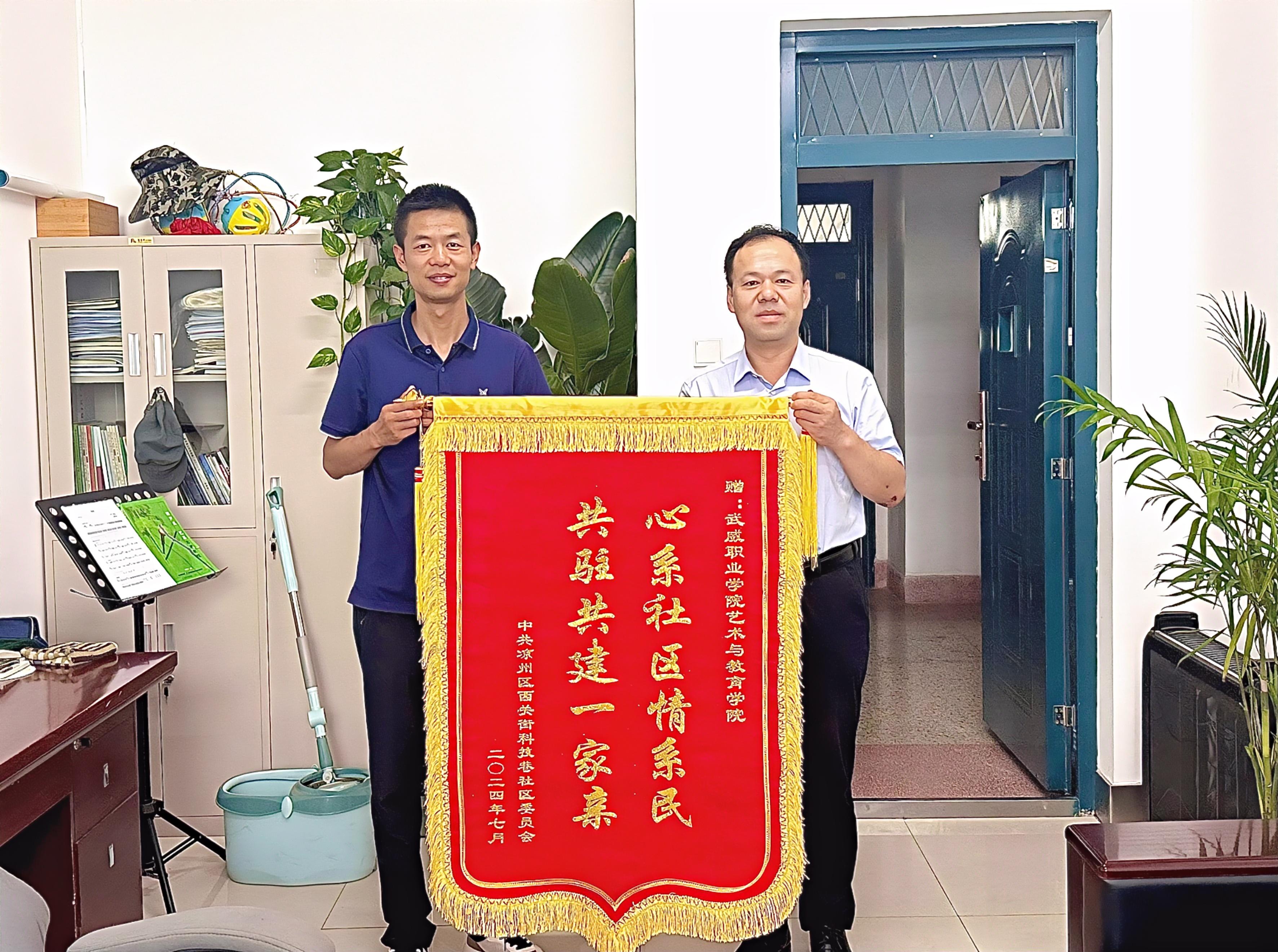 一份榮譽(yù),一份信任,一份鼓勵(lì)。此次贈(zèng)旗是對(duì)我院在西關(guān)科技巷社區(qū)開(kāi)展社會(huì)實(shí)踐活動(dòng)成果的充分肯定,有助于進(jìn)一步調(diào)動(dòng)學(xué)生參與社會(huì)實(shí)踐活動(dòng)的積極性,教育引導(dǎo)學(xué)生在社會(huì)課堂中“受教育、展才干、作貢獻(xiàn)”。下一步,我院將深入推進(jìn)學(xué)生志愿服務(wù)活動(dòng),為基層社會(huì)治理和文明武威高質(zhì)量發(fā)展添磚加瓦!
