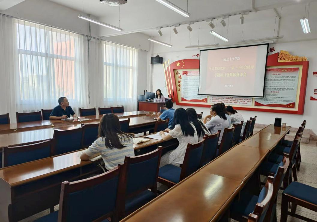 8月13日,馬克思主義學院舉行學習貫徹黨的二十屆三中全會精神專題研討暨集體備課會。馬克思主義學院副院長劉心主持會議,學院教師參加會議。