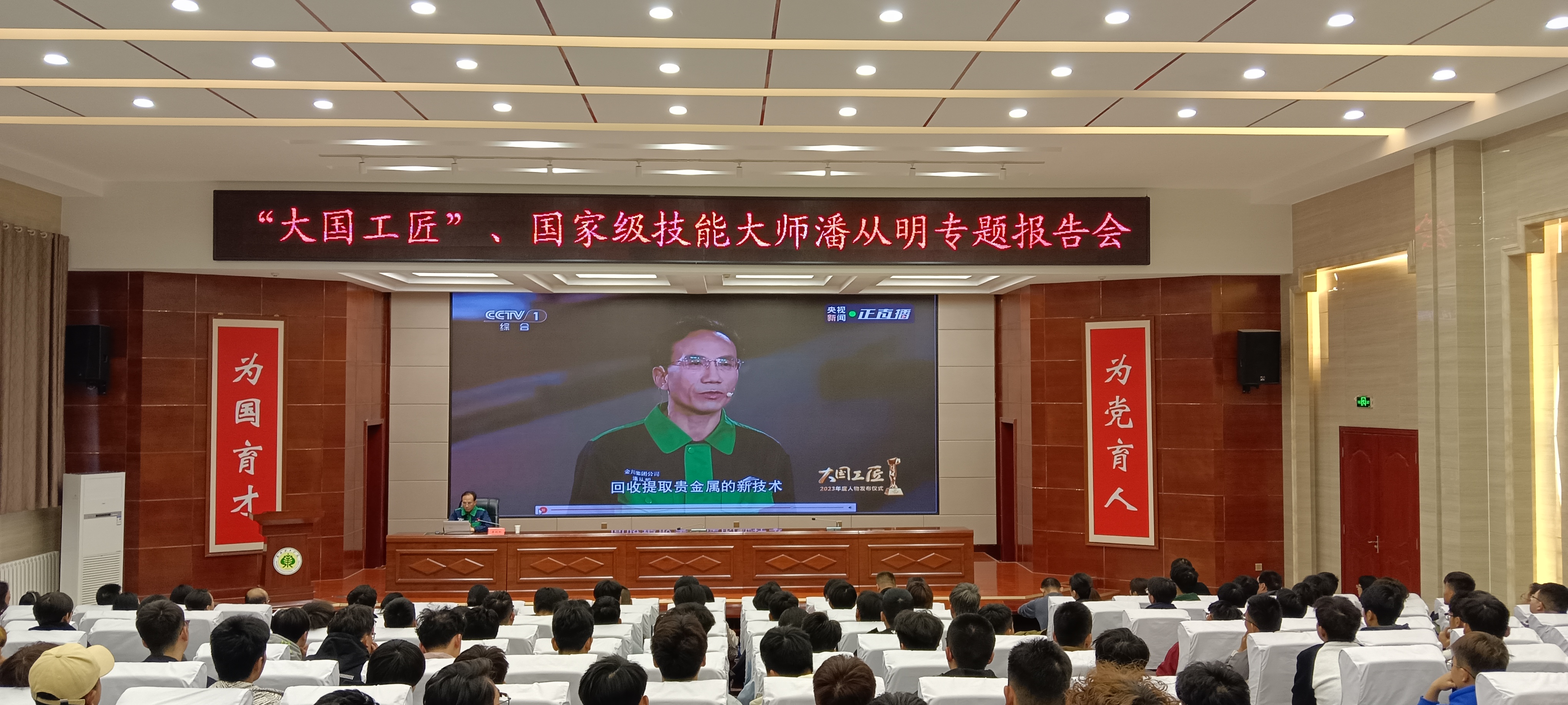 潘從明以“弘揚工匠、勞模精神 勇?lián)聲r代使命”為題,從創(chuàng)新的使命與初心、創(chuàng)新的方法、新員工塑培等方面結(jié)合自身工作經(jīng)歷,分享了從金川公司技校畢業(yè)后,通過自己的不懈努力,完成了從一名學徒到普通工人、高級技師到國家級技能大師,再到大國工匠的跨越。