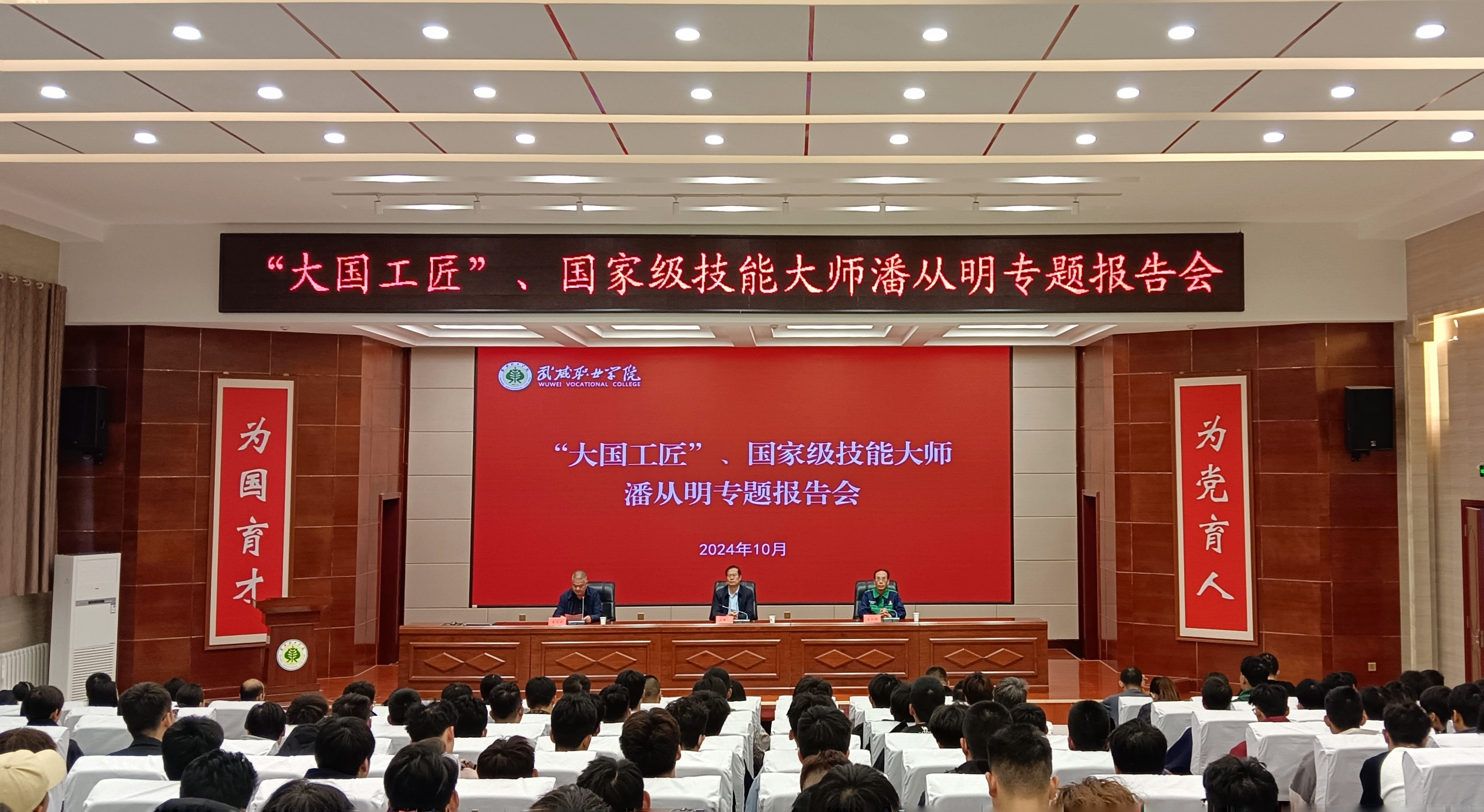 為深入學習貫徹落實習近平總書記關(guān)于大力弘揚勞模精神、勞動精神、工匠精神的重要指示精神,充分發(fā)揮廣大勞模以及各行各業(yè)先進人物榜樣的引領(lǐng)作用,努力培養(yǎng)更多的大國工匠、能工巧匠。10月12日,學校邀請“大國工匠”全國勞動模范、全國“五一”勞動獎章獲得者潘從明大師來我校作專題報告。校長、黨委副書記張開禮出席報告會,學校黨委委員、副校長王守云主持報告會。師生代表共計220余人參加了報告會。