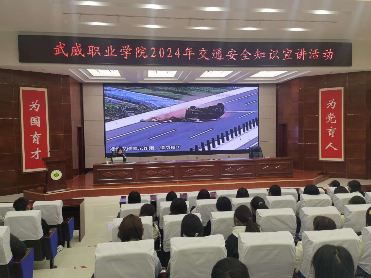 為進(jìn)一步推進(jìn)平安校園建設(shè),增強(qiáng)師生的交通安全意識(shí),預(yù)防和減少交通事故的發(fā)生。10月24日,學(xué)校邀請(qǐng)武威市公安局交警支隊(duì)王穎警官來(lái)學(xué)校開(kāi)展交通安全知識(shí)宣講活動(dòng),為師生們帶來(lái)了一堂深刻的交通安全警示課。宣講活動(dòng)由安全保衛(wèi)處處長(zhǎng)李欣主持。