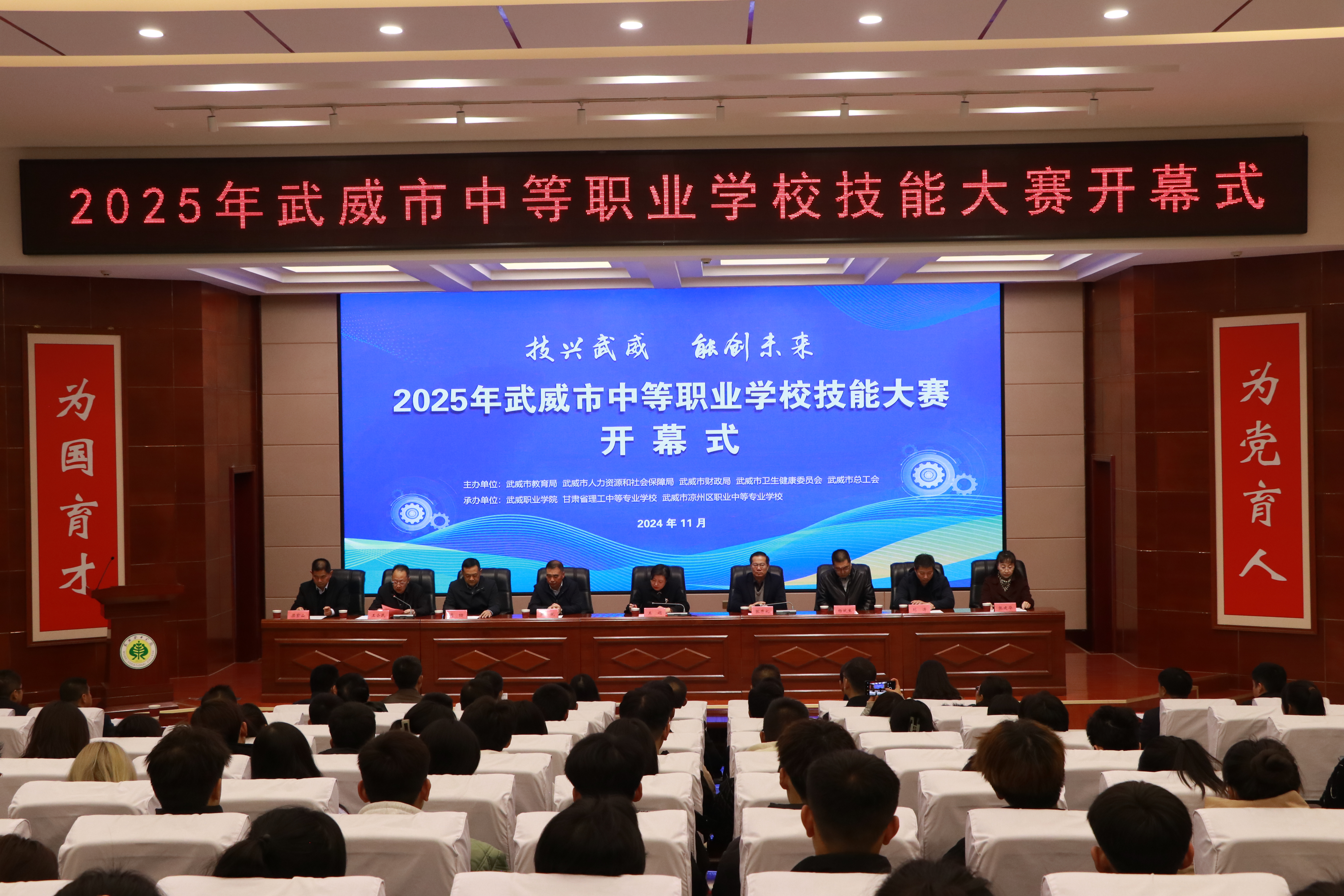 11月18日,由武威市教育局、武威市人社局、武威市財政局、武威市衛(wèi)生健康委員會、武威市總工會主辦,我校和甘肅省理工中等專業(yè)學校、武威市涼州區(qū)職業(yè)中等專業(yè)學校承辦的2025年武威市中等職業(yè)學校技能大賽在學校菁英廳隆重開幕。