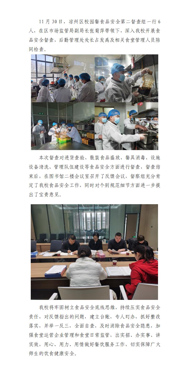 涼州區(qū)校園餐食品安全第二督查組來(lái)我校開(kāi)展食品安全專項(xiàng)督查