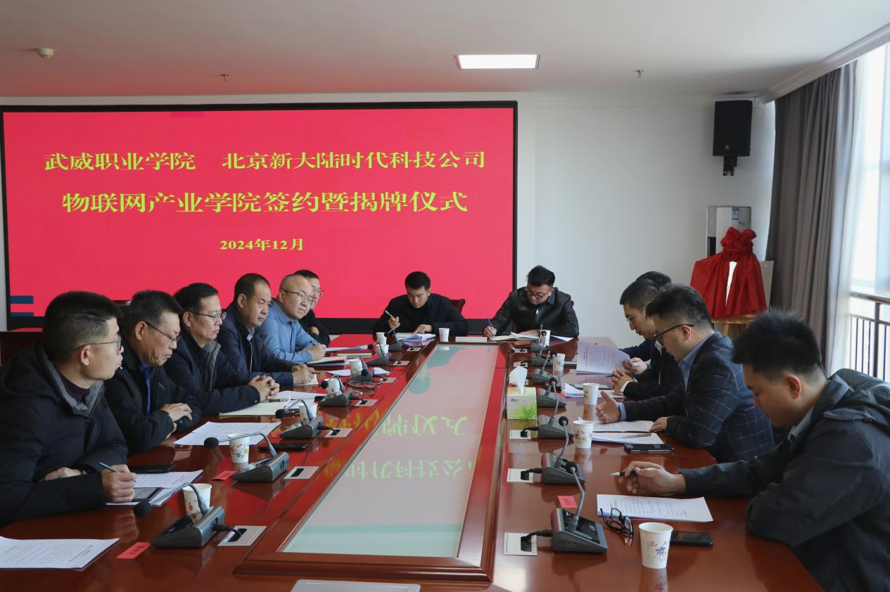 為全面深化產(chǎn)教融合,加強校企合作,進(jìn)一步提高我校人才培養(yǎng)質(zhì)量。12月3日,學(xué)校在能源科技樓811會議室舉行武威職業(yè)學(xué)院和北京新大陸時代科技公司物聯(lián)網(wǎng)產(chǎn)業(yè)學(xué)院簽約暨揭牌儀式。北京新大陸時代科技公司西北區(qū)總監(jiān)劉寧、技術(shù)總監(jiān)樊斌,相關(guān)業(yè)務(wù)部門負(fù)責(zé)人,學(xué)校校長、黨委副書記張開禮、黨委副書記翟存祥、相關(guān)部門負(fù)責(zé)人及教師代表參加活動。黨委委員、副校長王永緒主持儀式。