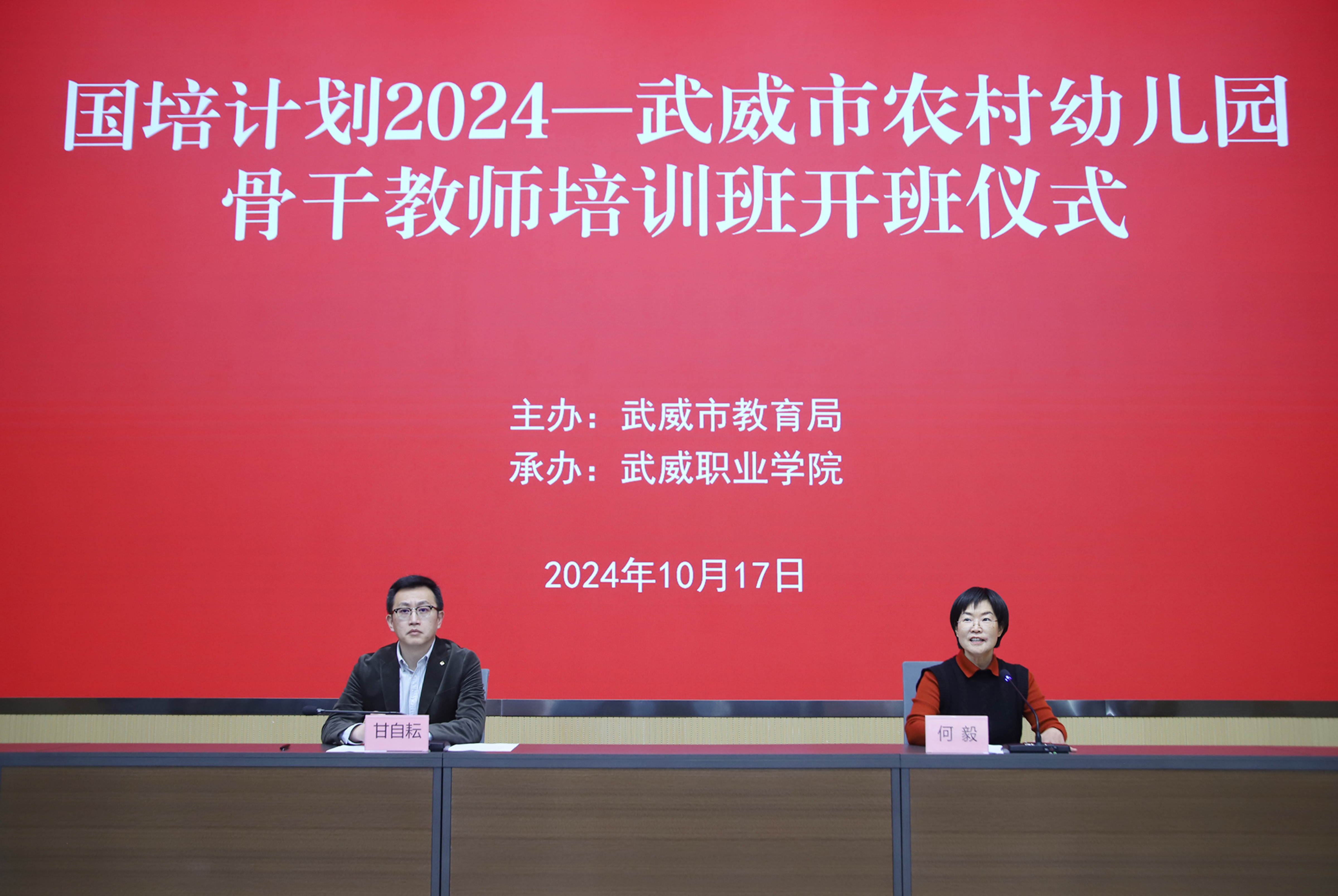10月17日上午,由武威市教育局主辦,我校承辦的“國培計(jì)劃(2024)”—武威市農(nóng)村幼兒園骨干教師培訓(xùn)班在能源科技樓一樓報(bào)告廳順利開班,來自我市各農(nóng)村幼兒園的80名骨干教師參加培訓(xùn)。武威市教育局黨組成員、副局長甘自耘出席開班儀式。學(xué)校黨委委員、副校長何毅主持開班儀式。