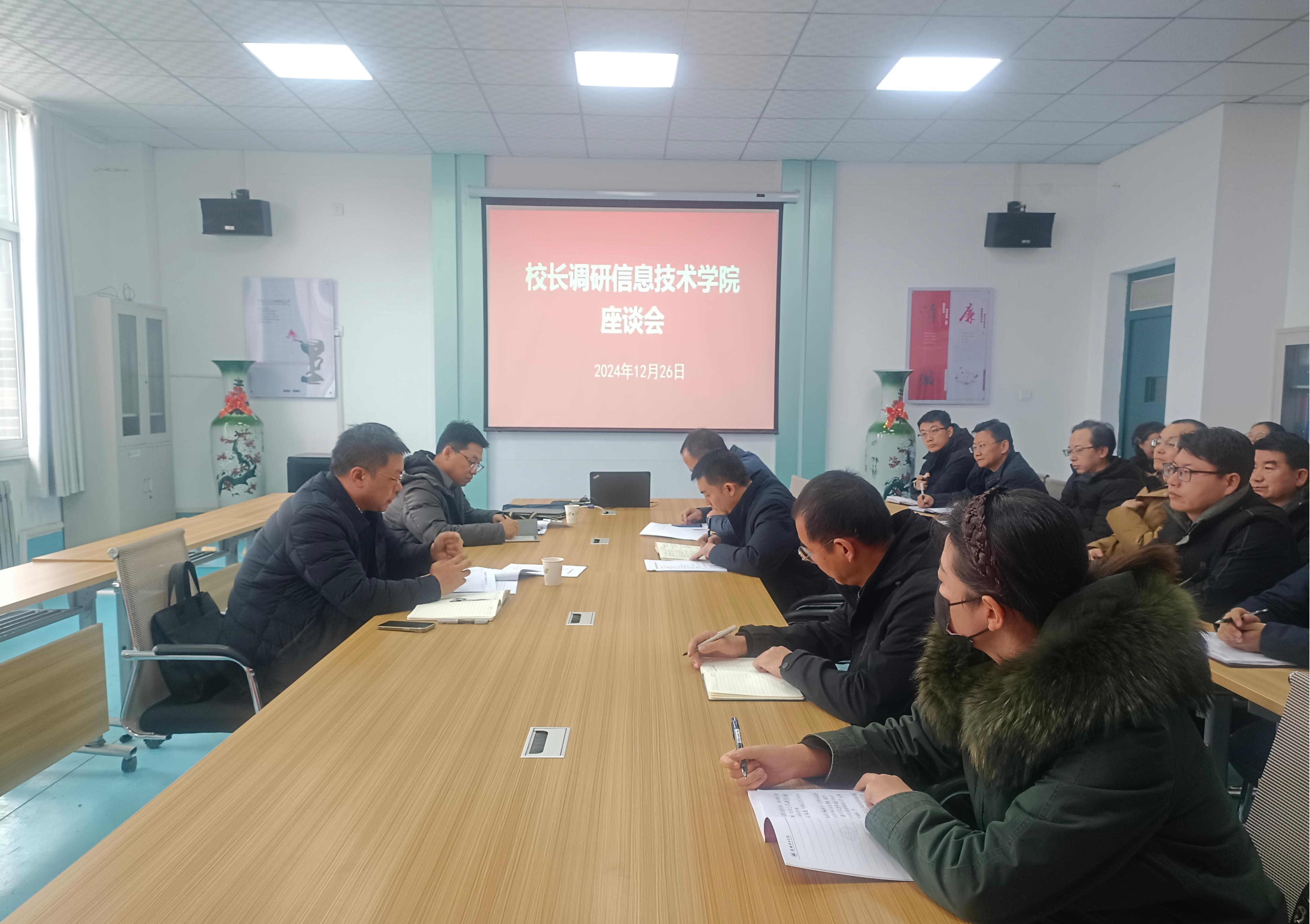 12月26日,校長(zhǎng)李海軍深入信息技術(shù)學(xué)院,通過實(shí)地走訪、座談交流等形式開展調(diào)研,辦公室主任董鵬陪同調(diào)研。信息技術(shù)學(xué)院負(fù)責(zé)人和教師代表參加了調(diào)研活動(dòng)。