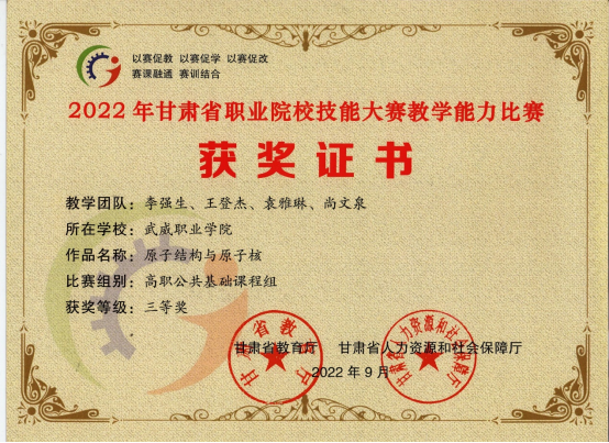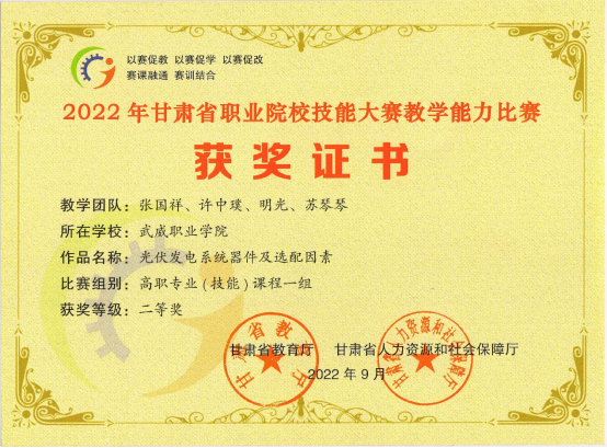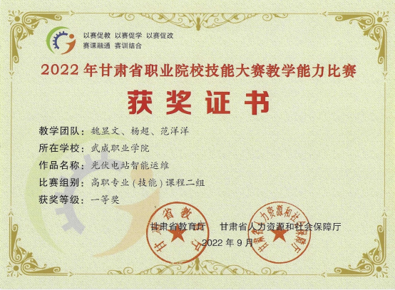 2022年中科低碳新能源技術(shù)共有20名教師參加甘肅省職業(yè)院校技能大賽教學能力比賽,獲得省級一等獎1項,二等獎2項,三等獎2項。