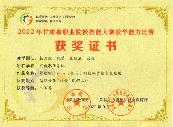 楊彥紅、魏堃、 張政威、白巍 | 帶點例子和伽馬射線測量技術(shù)及應用 | 省級 | 二等 |