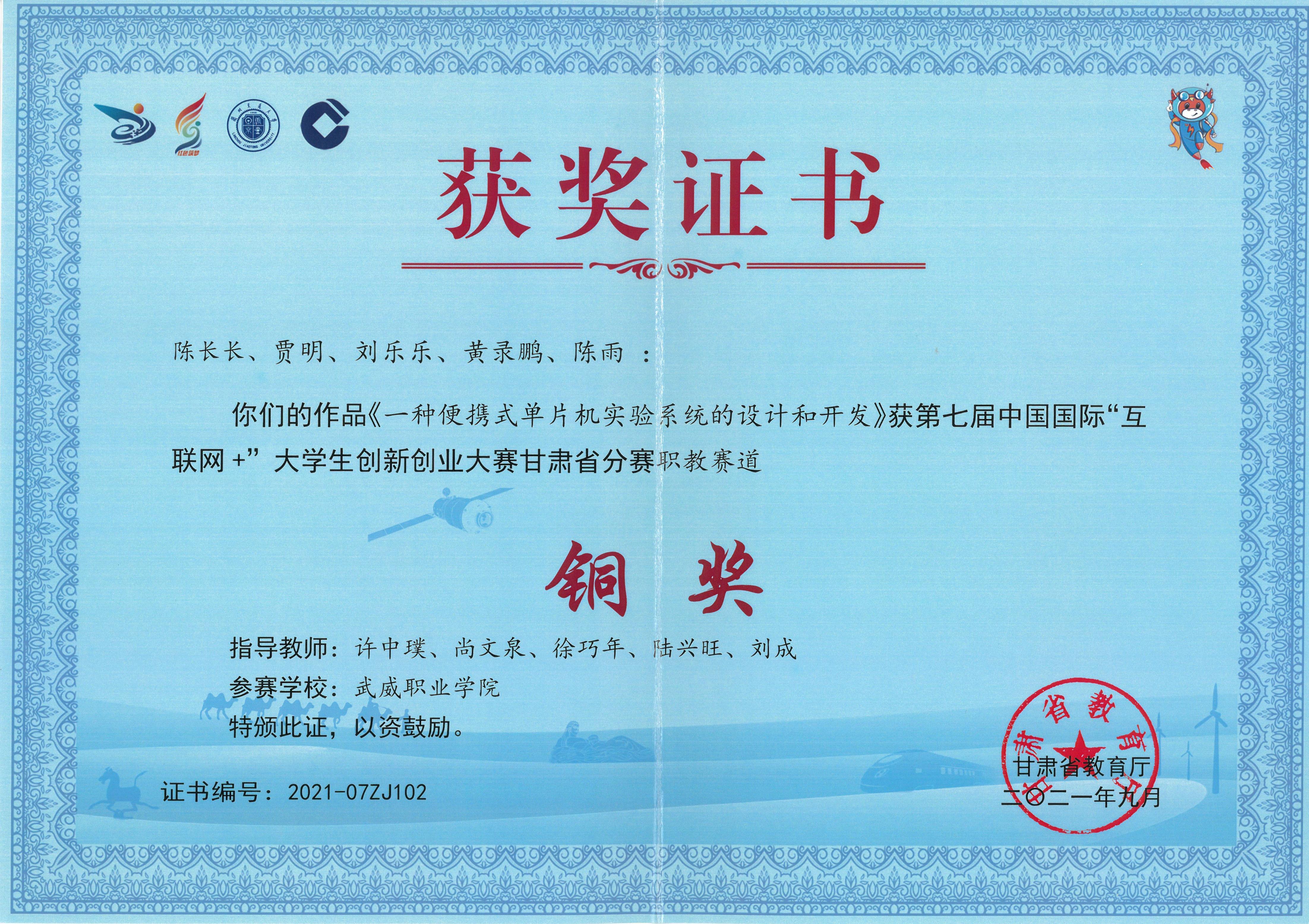 2021年學生獲第七屆中國國際“互聯(lián)網(wǎng)+”大學生創(chuàng)新創(chuàng)業(yè)大賽甘肅賽區(qū)銅獎