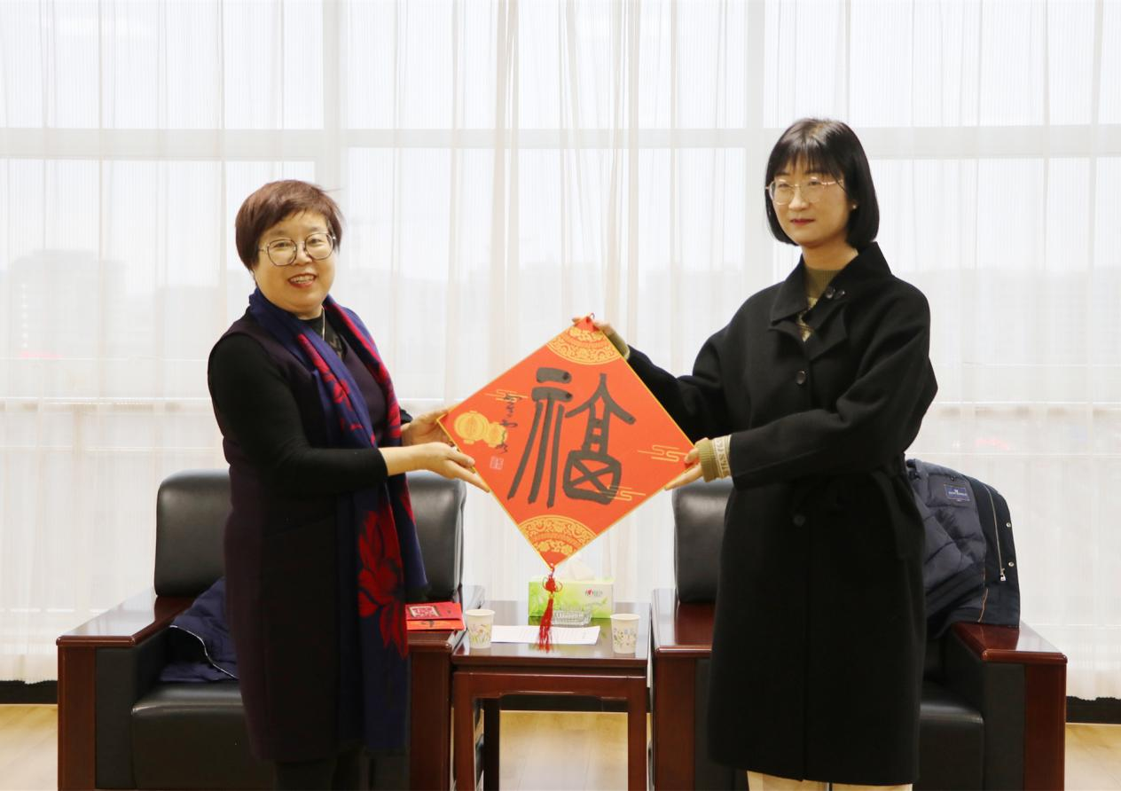 王宏對劉光美一行的到來表示歡迎,并詳細(xì)介紹了學(xué)校的辦學(xué)理念,辦學(xué)特色成果,教育改革創(chuàng)新和統(tǒng)戰(zhàn)工作情況等方面內(nèi)容。劉光美對學(xué)校一直以來支持民建組織各項工作表示感謝,并代表民建市委向張葦莉贈送春聯(lián)并致以親切的問候和節(jié)日的祝福,同時勉勵其始終牢記教育初心,爭做師德高尚、潛心育人的好老師。