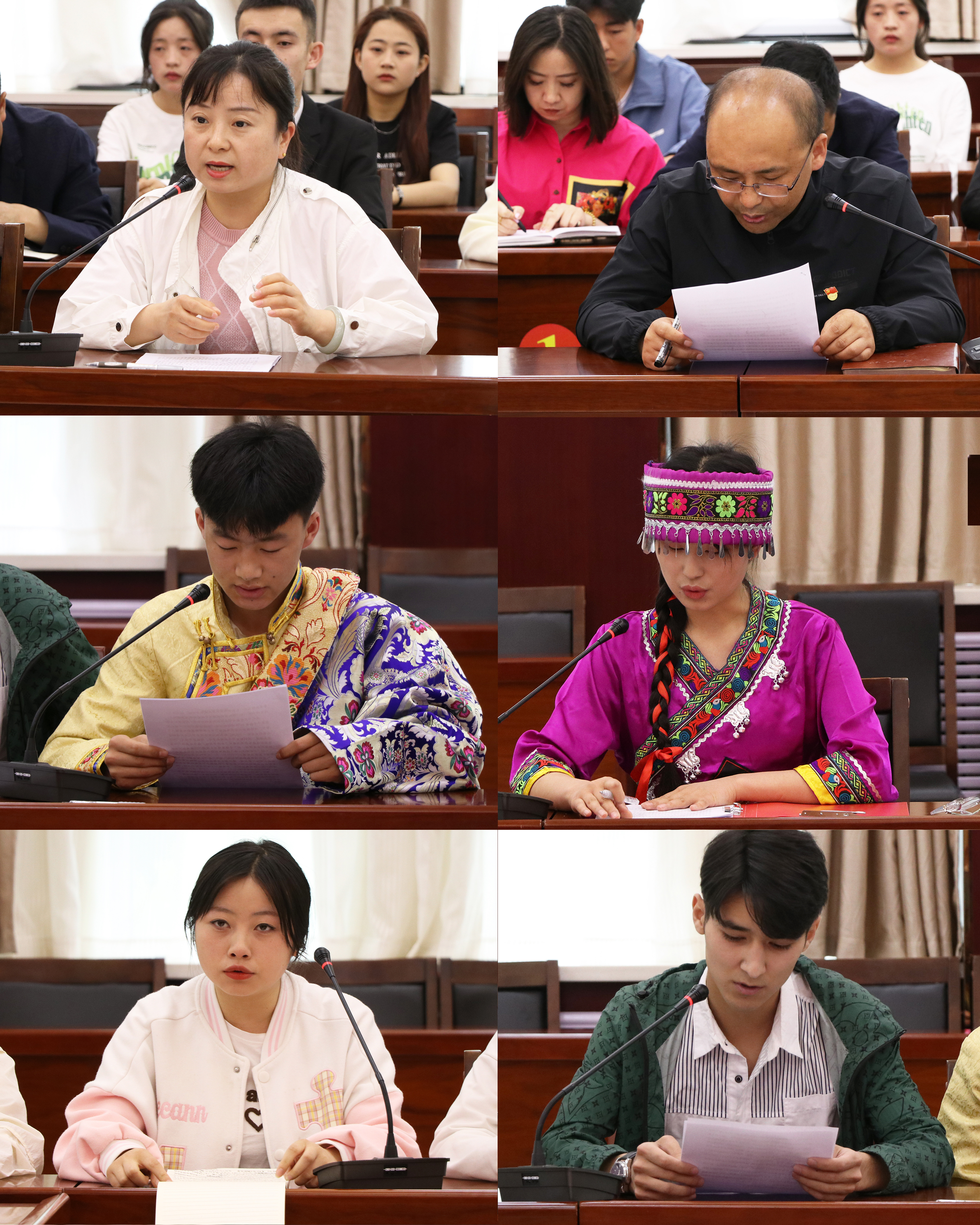 來(lái)自漢族、藏族、回族、維吾爾族、土族、苗族、東鄉(xiāng)族、保安族、裕固族、滿族等民族的10名師生代表在座談會(huì)上進(jìn)行了交流發(fā)言,分別介紹了本民族的風(fēng)土人情、傳統(tǒng)文化、生活習(xí)慣、成長(zhǎng)經(jīng)歷和在學(xué)校的學(xué)習(xí)工作生活情況。大家紛紛表示,中華民族一家親,要始終牢記黨和國(guó)家的關(guān)心關(guān)懷,鑄牢中華民族共同體意識(shí),珍惜大學(xué)時(shí)光,扎實(shí)學(xué)好知識(shí),練就過硬本領(lǐng),將來(lái)積極投身家鄉(xiāng)建設(shè),把對(duì)黨和國(guó)家的感恩之情轉(zhuǎn)化為努力報(bào)國(guó)之行,為促進(jìn)各民族共同團(tuán)結(jié)進(jìn)步,共同繁榮發(fā)展。