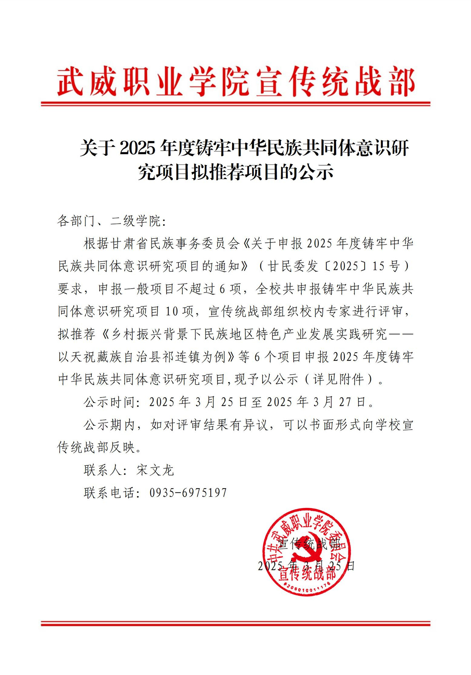 關于2025年鑄牢中華民族共同體意識宣傳教育專項研究課題擬推薦項目的公示