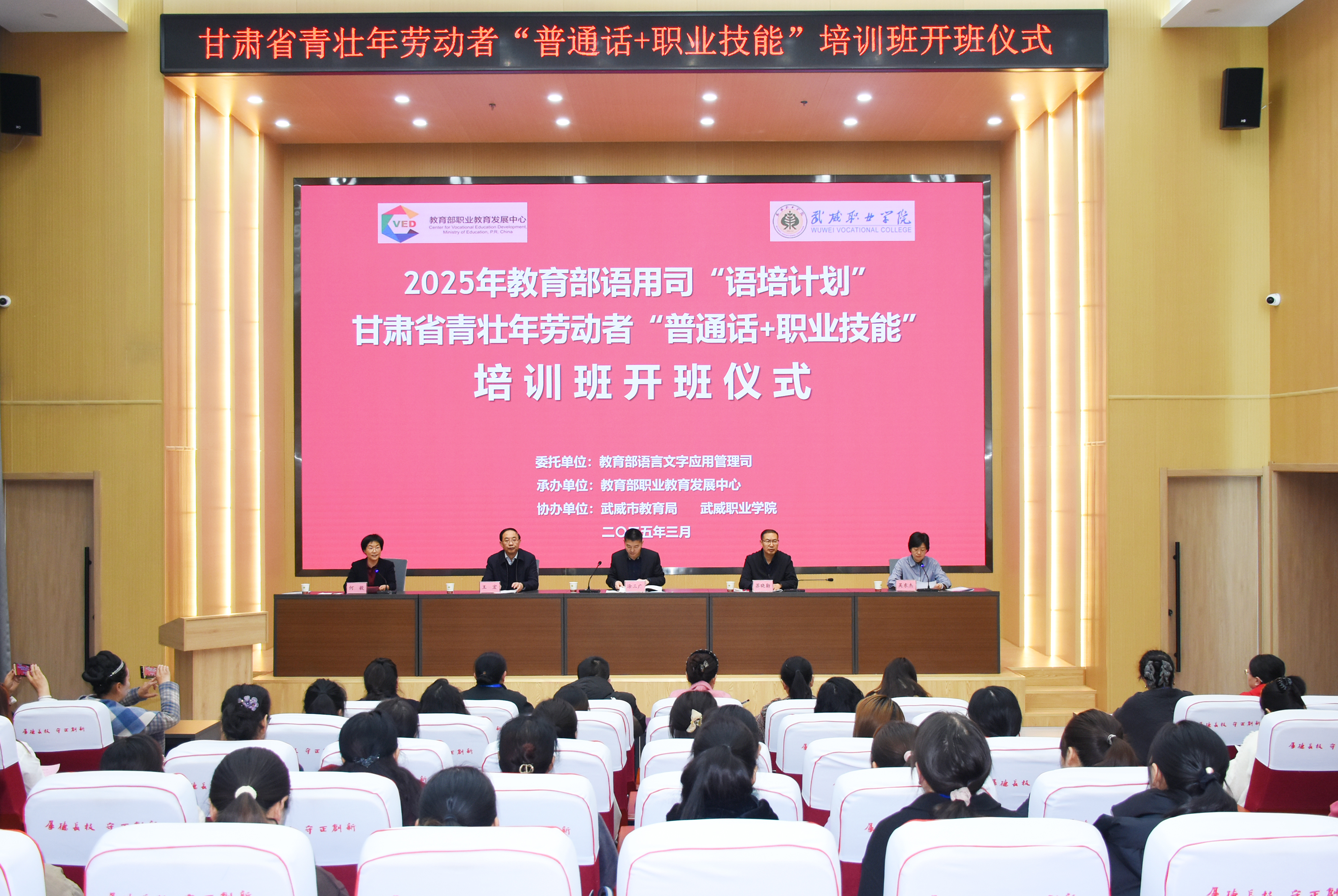 3月25日,教育部語用司“語培計(jì)劃”甘肅省青壯年勞動(dòng)者“普通話+職業(yè)技能”培訓(xùn)班在學(xué)校成功開班。本次培訓(xùn)由教育部語用司主辦,教育部職業(yè)教育發(fā)展中心承辦,武威市教育局和學(xué)校協(xié)辦。本次培訓(xùn)是深入貫徹落實(shí)黨的二十大和二十屆二中、三中全會(huì)精神,落實(shí)全國教育大會(huì)精神,實(shí)施《教育強(qiáng)國建設(shè)規(guī)劃綱要(2024-2035年)》的重要舉措,旨在進(jìn)一步推廣國家通用語言文字的應(yīng)用,促進(jìn)鑄牢中華民族共同體意識(shí)。