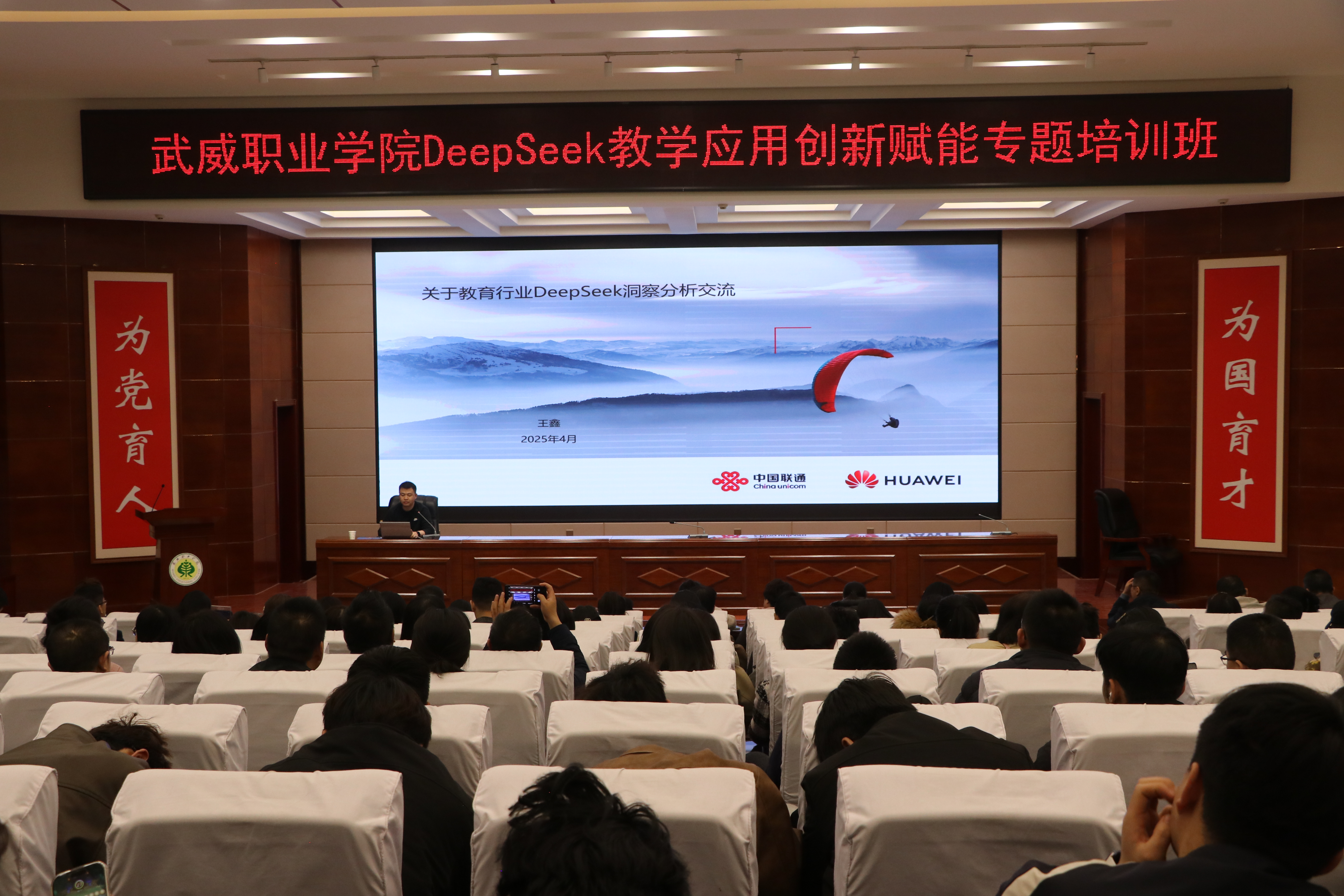 為深入探討DeepSeek技術(shù)的應(yīng)用,助力學(xué)校師生運(yùn)用AI工具進(jìn)行教學(xué)實(shí)踐、智慧課程建設(shè)與科學(xué)研究工作,為教學(xué)改革與教學(xué)創(chuàng)新實(shí)踐筑基賦能。4月3日,學(xué)校邀請聯(lián)通數(shù)據(jù)智能有限公司教育行業(yè)解決方案專家包紅梅和華為技術(shù)有限公司智算產(chǎn)業(yè)AI架構(gòu)師王鑫,舉辦了“DeepSeek教學(xué)應(yīng)用創(chuàng)新賦能”專題講座。講座由網(wǎng)絡(luò)安全與信息技術(shù)中心負(fù)責(zé)人史子新主持,學(xué)校各部門、二級學(xué)院教師代表,信息技術(shù)學(xué)院學(xué)生代表共計(jì)220人參加。