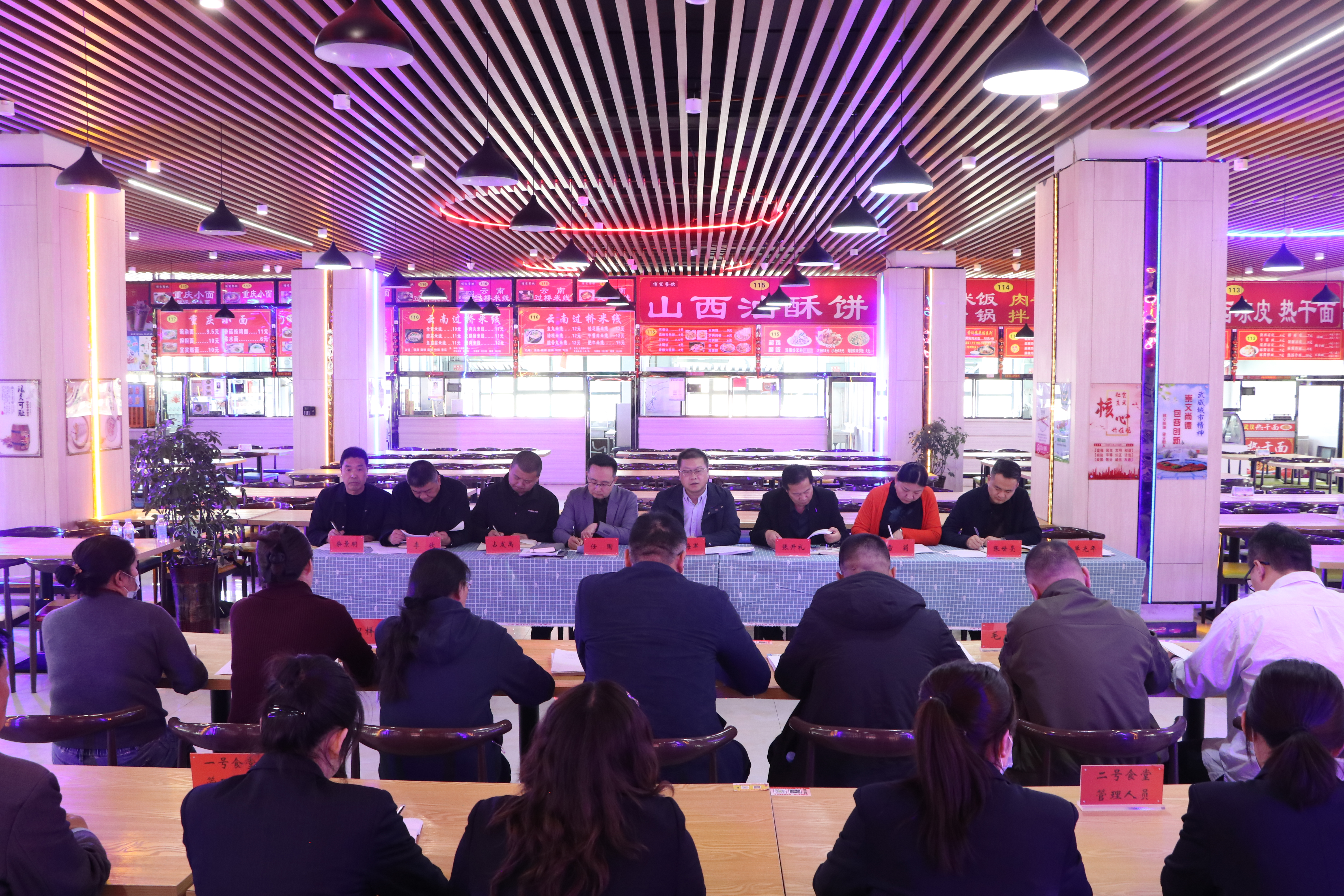 李海軍作總結(jié)講話,他代表學(xué)校對每一位默默奉獻、辛勤付出的餐飲公司管理者、服務(wù)者表示誠摯的感謝。李海軍指出,本次會議的核心目標(biāo)是堅持以習(xí)近平新時代中國特色社會主義思想為指導(dǎo),堅決貫徹落實食品安全“四個最嚴(yán)”要求,堅持目標(biāo)導(dǎo)向和問題導(dǎo)向,采取有力有效措施,消除校園食品安全風(fēng)險隱患,建立健全制度機制,提升餐飲服務(wù)質(zhì)量和水平,切實保障食品安全。一是要提高思想認(rèn)識,樹牢食品安全底線思維;二是要嚴(yán)把采購關(guān)口,加強食堂日常監(jiān)管;三是要強化員工教育培訓(xùn),有力提升服務(wù)水平;四是要加大病媒生物防制,打造安全衛(wèi)生就餐環(huán)境;五是要加強飯菜質(zhì)量價格監(jiān)管,保障師生切身權(quán)益;六是要加強食品安全問題排查,嚴(yán)格落實整改工作。