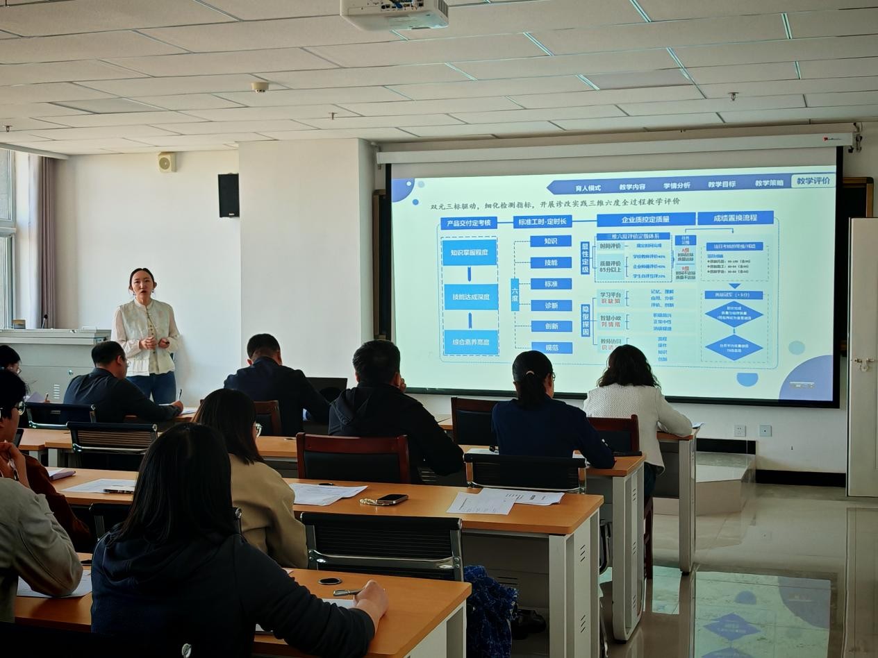 此次大賽共有6個(gè)參賽隊(duì)參加。大賽依據(jù)專業(yè)課程特點(diǎn),劃分了專業(yè)課程一組、專業(yè)課程二組兩個(gè)參賽組別。比賽現(xiàn)場,緊張而熱烈的氛圍彌漫在每一個(gè)角落。各參賽隊(duì)嚴(yán)格按照省賽的高標(biāo)準(zhǔn)要求,依次完成教學(xué)實(shí)施報(bào)告、無生授課及答辯三個(gè)關(guān)鍵環(huán)節(jié)。在教學(xué)實(shí)施報(bào)告環(huán)節(jié),參賽教師們猶如運(yùn)籌帷幄的將領(lǐng),用清晰的邏輯、詳實(shí)的數(shù)據(jù)和深刻的教學(xué)反思,闡述著自己對于課程的理解與設(shè)計(jì)。他們不僅展示了教學(xué)目標(biāo)的精準(zhǔn)設(shè)定、教學(xué)內(nèi)容的合理組織,更分享了在教學(xué)過程中如何運(yùn)用創(chuàng)新方法激發(fā)學(xué)生的學(xué)習(xí)興趣和潛能。