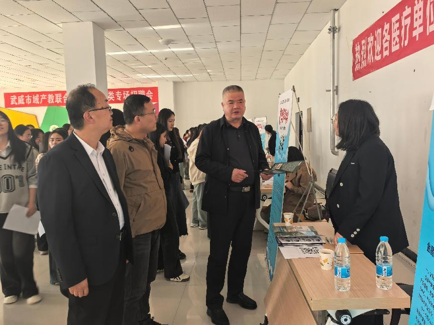 為深化產(chǎn)教融合、助力醫(yī)藥衛(wèi)生領(lǐng)域人才供需精準(zhǔn)對(duì)接,全面推進(jìn)2025屆畢業(yè)生充分就業(yè)。4月28日,學(xué)校主辦的“職通未來(lái)守護(hù)生命-2025屆醫(yī)藥衛(wèi)生類(lèi)校園專(zhuān)場(chǎng)招聘會(huì)”在學(xué)生發(fā)展中心成功舉辦。學(xué)校黨委委員、副校長(zhǎng)王守云,護(hù)理學(xué)院、醫(yī)學(xué)技術(shù)學(xué)院和藥學(xué)院負(fù)責(zé)人,全體輔導(dǎo)員、2022級(jí)班主任及畢業(yè)生參加。