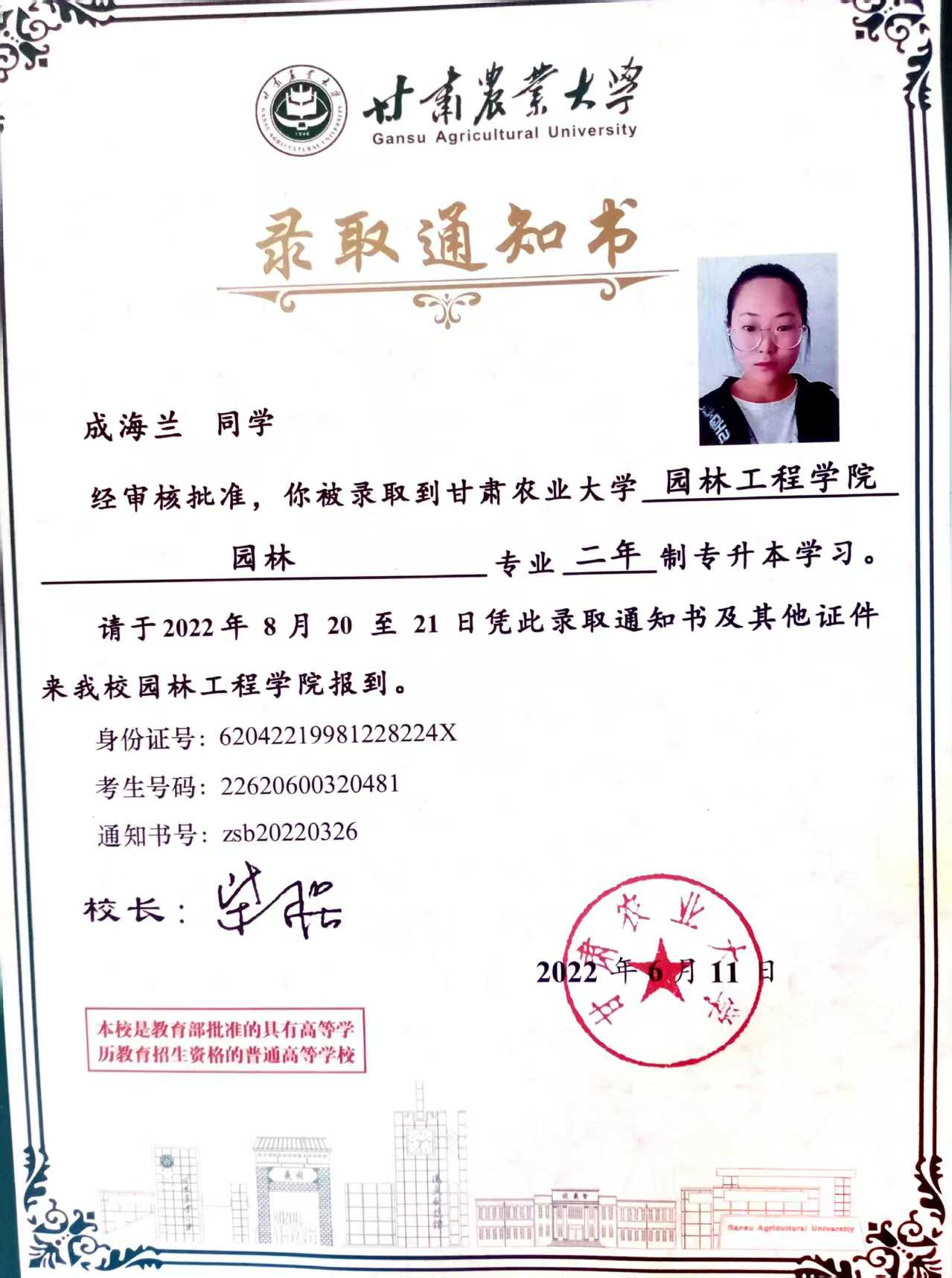 2022.09-2024.06,就讀于甘肅農(nóng)業(yè)大學園林工程學院園林本科專業(yè)