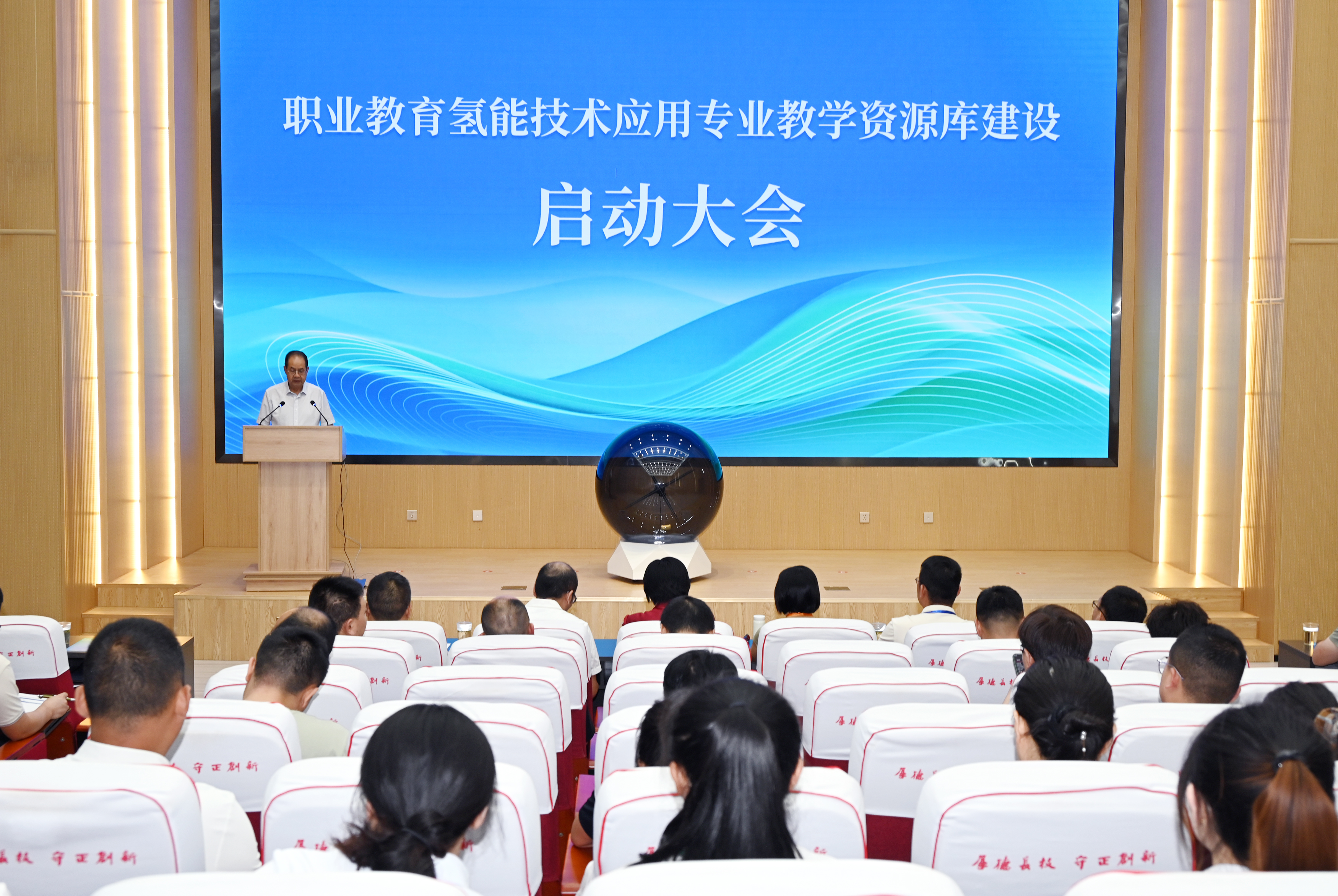 在參會(huì)領(lǐng)導(dǎo)和嘉賓的共同見證下,舉行了職業(yè)教育氫能技術(shù)應(yīng)用專業(yè)教學(xué)資源庫建設(shè)啟動(dòng)儀式。隨著啟動(dòng)球的點(diǎn)亮,標(biāo)志著資源庫建設(shè)正式啟動(dòng)。