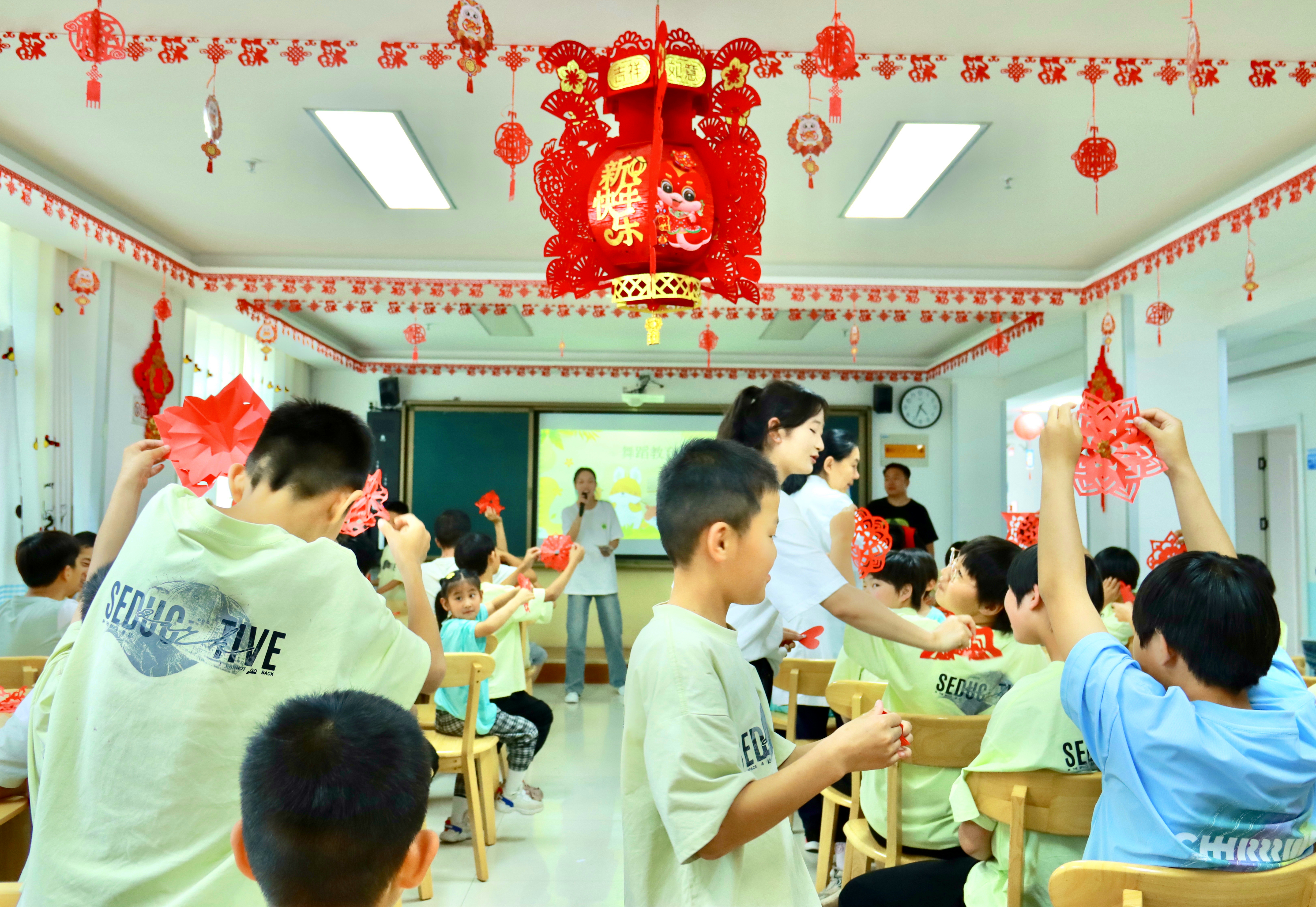 走進(jìn)福利院,志愿者與小朋友們暖心互動,剪紙課上,彩紙在指尖翻飛,剪出的圖案化作聲聲祝福,在培養(yǎng)孩子們的動手實踐能力的同時,更在美感體驗中將非遺傳承的種子種在心里,開出燦爛的花。手拍鼓前,節(jié)奏與歡笑交織,隨著鼓點的律動,輕快的旋律敲出滿室溫馨。就連平日里略顯枯燥的科普小知識,也被志愿者們講成了一個個“溫暖故事”?;顒幼詈?,志愿者們拿出提前準(zhǔn)備好的小禮物分發(fā)給每個孩子,收到禮物的孩子們露出了燦爛的笑容,這份溫暖在彼此心間久久回蕩。