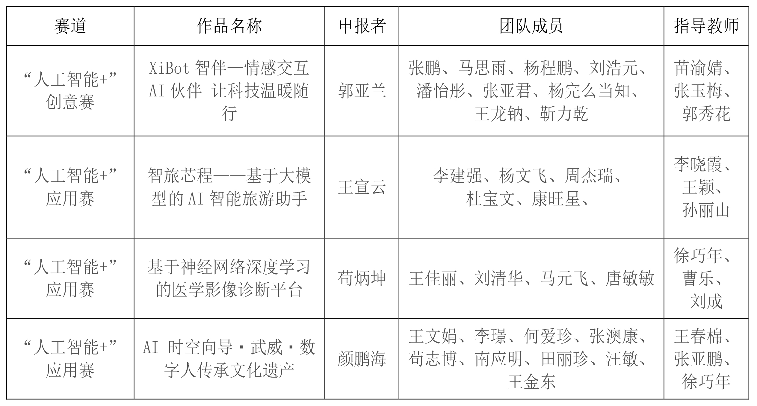 根據(jù)《挑戰(zhàn)杯|第十九屆“挑戰(zhàn)杯”中國移動全國大學(xué)生課外學(xué)術(shù)科技作品競賽來啦》推文,經(jīng)自主申報,校團(tuán)委審核,擬推薦以下作品參加第十九屆“挑戰(zhàn)杯”全國大學(xué)生課外學(xué)術(shù)科技作品競賽“人工智能+”專項賽,現(xiàn)予以公示。