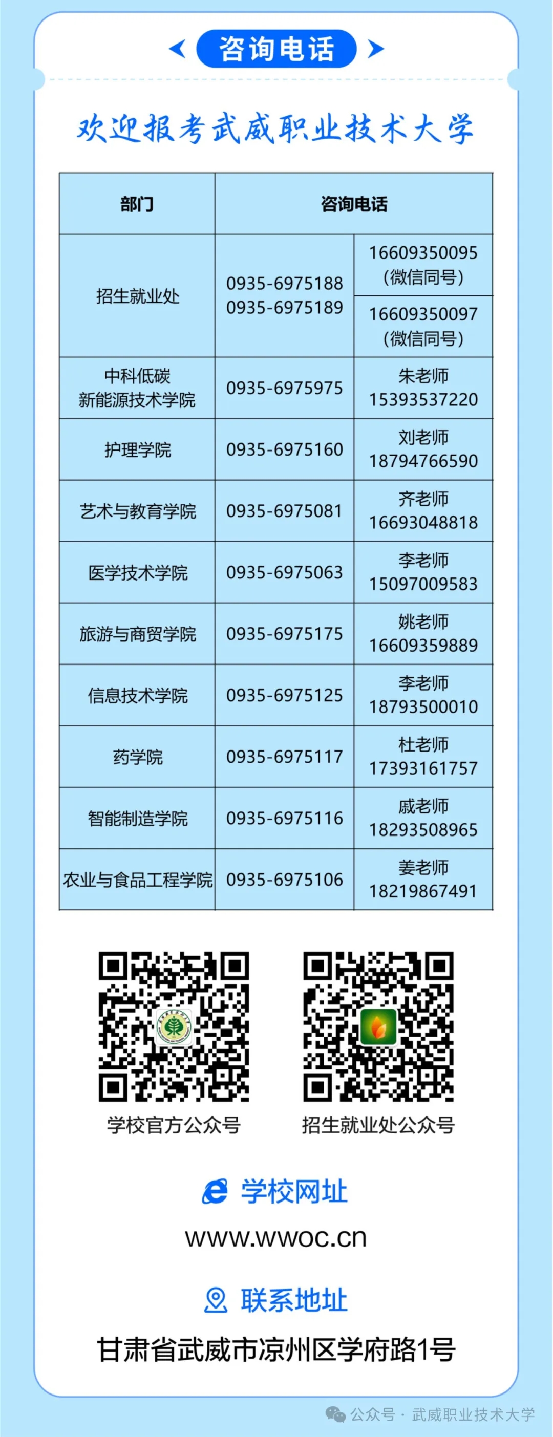 版權(quán)所有 ?武威職業(yè)技術(shù)大學(xué) 地址:甘肅省武威市涼州區(qū)西關(guān)街學(xué)府路1號(hào)