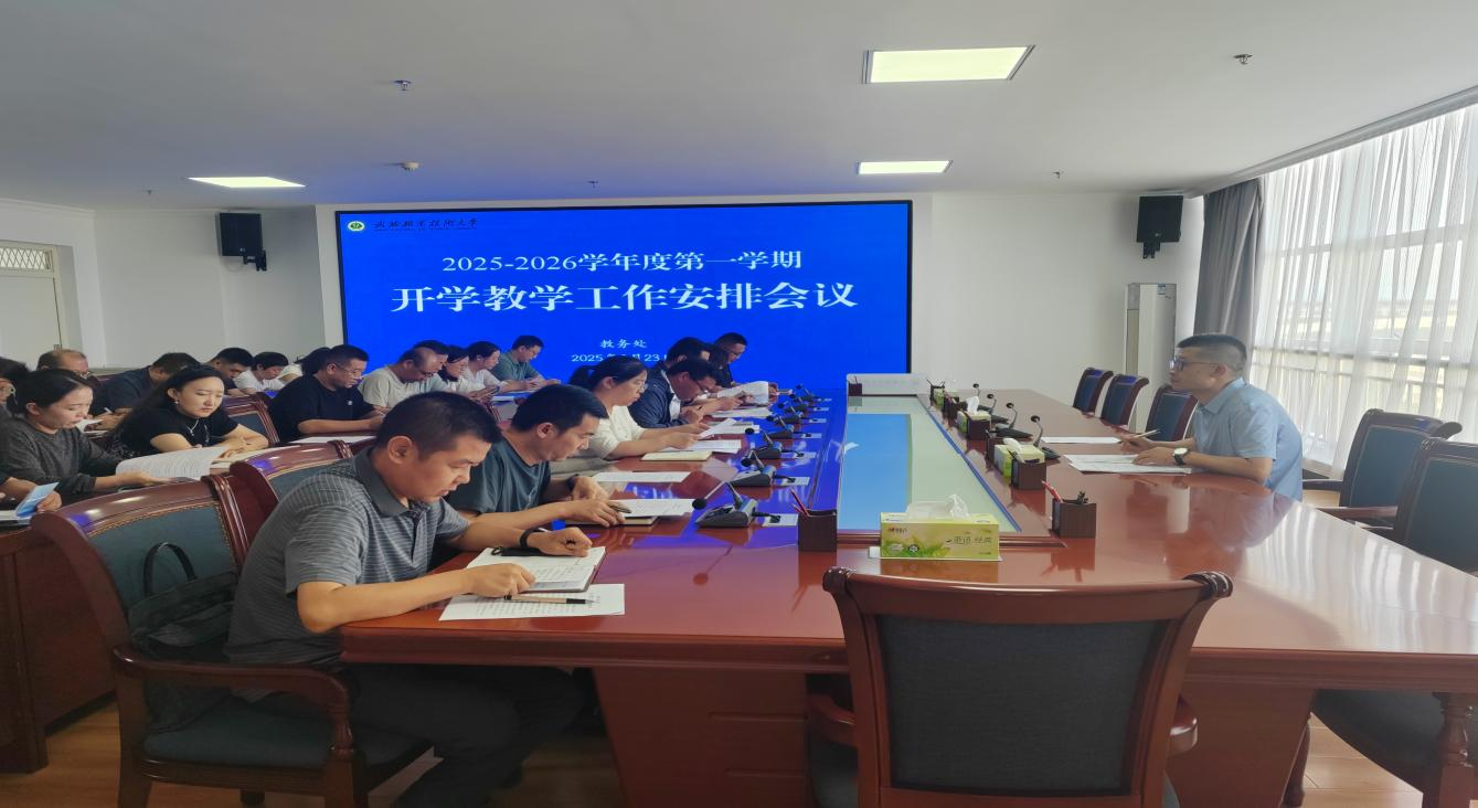 為統(tǒng)籌推進新學期教學工作有序開展,確保各項教學任務落地見效,8月23日下午,武威職業(yè)技術(shù)大學在能源科技樓811會議室召開2025-2026學年度第一學期開學教學工作安排會議。各學院(部)負責人、教學秘書、教務處全體人員參加。