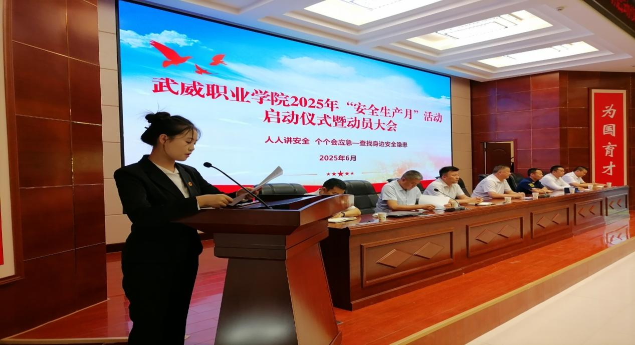 6月16日下午,“安全生產(chǎn)月”啟動儀式暨動員大會在學(xué)校菁英廳舉行。學(xué)校黨委委員、副校長王守云作動員講話,強(qiáng)調(diào)校園安全是辦學(xué)治校的生命線,要求全校師生以高度的責(zé)任感積極參與各項(xiàng)活動,將安全理念內(nèi)化于心、外化于行。安全保衛(wèi)處處長李欣對活動作了詳細(xì)安排。學(xué)生代表王盼發(fā)出倡議,號召同學(xué)們自覺學(xué)習(xí)安全知識、遵守安全規(guī)范、擔(dān)當(dāng)安全責(zé)任。最后,師生代表在印有活動主題的承諾墻上鄭重簽名,表達(dá)踐行安全的堅定決心。