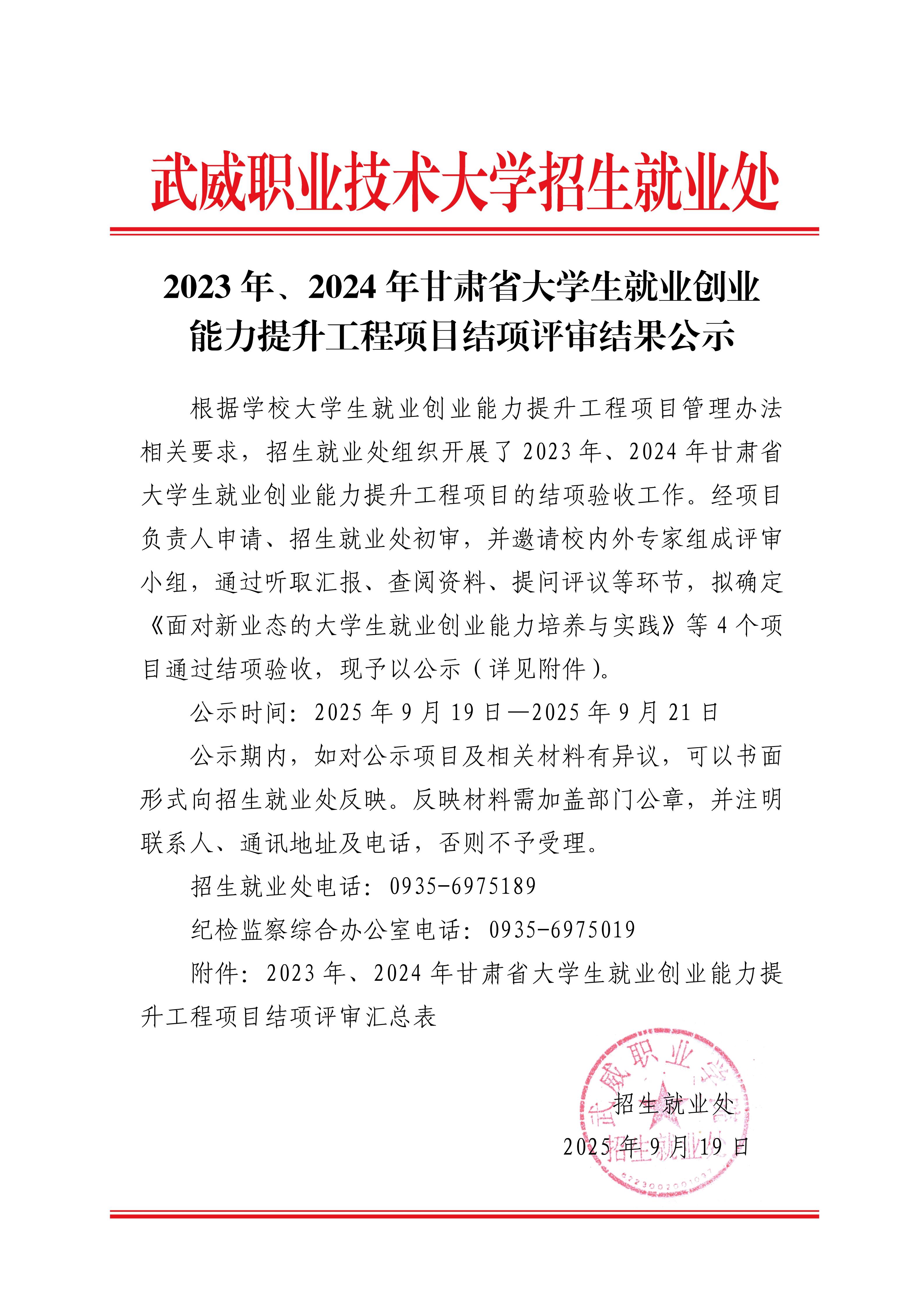 2023年、2024年甘肅省大學(xué)生就業(yè)創(chuàng)業(yè)能力提升工程項(xiàng)目結(jié)項(xiàng)評(píng)審結(jié)果公示