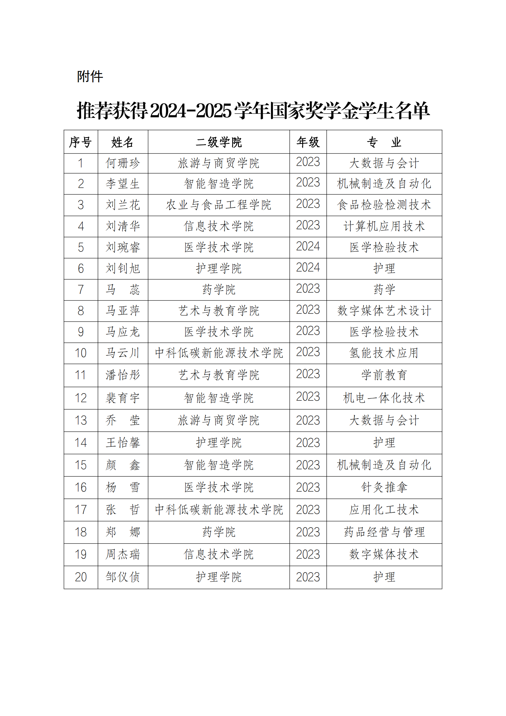 關于推薦獲得2024-2025學年國家獎學金學生名單的公示
