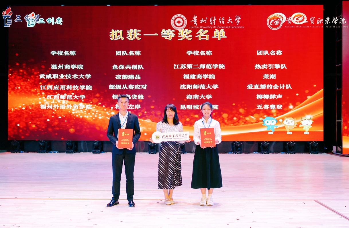 自2024年9月賽事啟動(dòng)以來(lái),經(jīng)過(guò)校賽、省賽層層選拔,最終學(xué)校4支團(tuán)隊(duì)成功晉級(jí)全國(guó)總決賽,在直播電商、鄉(xiāng)村振興、產(chǎn)學(xué)用(BUC)三大實(shí)戰(zhàn)賽項(xiàng)中與全國(guó)優(yōu)秀參賽團(tuán)隊(duì)同臺(tái)競(jìng)技,最終“涼韻臻品”團(tuán)隊(duì)獲得直播電商實(shí)戰(zhàn)賽全國(guó)一等獎(jiǎng);“甜瓜勁旅”團(tuán)隊(duì)獲得鄉(xiāng)村振興實(shí)戰(zhàn)賽全國(guó)二等獎(jiǎng);“沖鋒小隊(duì)”團(tuán)隊(duì)和“intelligenthumidifier”團(tuán)隊(duì)雙雙獲得產(chǎn)學(xué)用(BUC)實(shí)戰(zhàn)賽全國(guó)二等獎(jiǎng)。