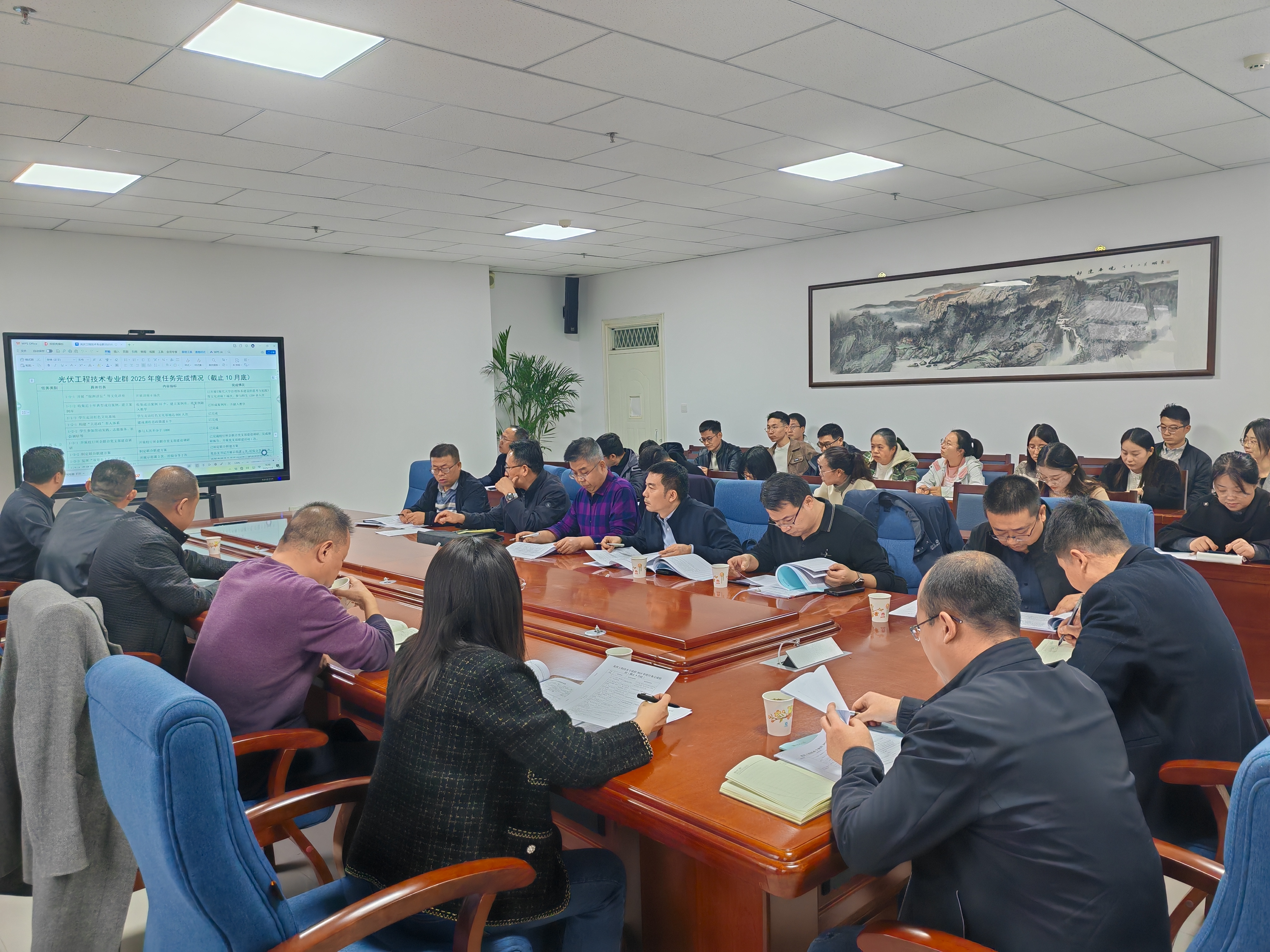 核與輻射檢測(cè)防護(hù)技術(shù)專(zhuān)業(yè)群和光伏工程技術(shù)專(zhuān)業(yè)群負(fù)責(zé)人分別匯報(bào)了專(zhuān)業(yè)群2025年建設(shè)任務(wù)完成情況、存在的問(wèn)題及下一步措施。參會(huì)部門(mén)分別匯報(bào)了工作推進(jìn)情況、進(jìn)一步支持專(zhuān)業(yè)群建設(shè)舉措等。