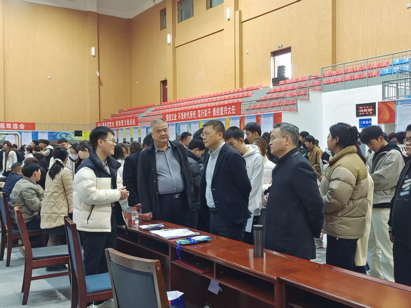 11月13日,校園招聘雙選會在學(xué)校體育館隆重舉行。校長李海軍、副校長王守云、伍國強親臨現(xiàn)場指導(dǎo)工作。李海軍詳細(xì)了解本屆畢業(yè)生的招聘需求與市場動向,走訪多家用人單位展位并聽取企業(yè)對學(xué)校人才培養(yǎng)的寶貴意見。同時,與應(yīng)聘學(xué)生進(jìn)行親切交流,勉勵畢業(yè)生們要樹立正確的擇業(yè)觀,立足本職,服務(wù)社會,將個人成長融入國家發(fā)展大局。