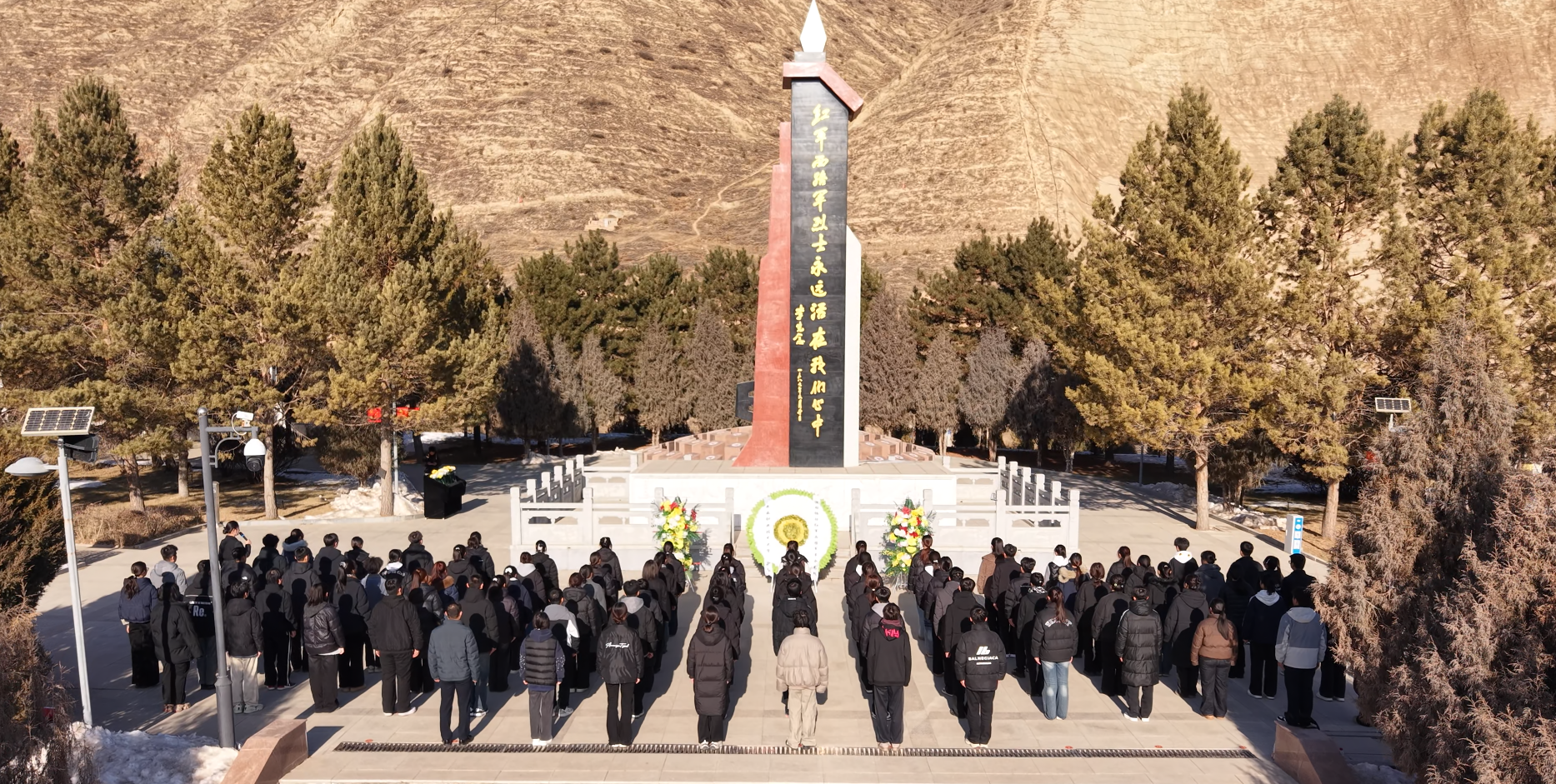 活動伊始,在莊嚴(yán)肅穆的烈士紀(jì)念碑前,全體人員列隊肅立,懷著無比崇敬的心情,深切緬懷在革命戰(zhàn)爭中英勇獻(xiàn)身的烈士。紀(jì)念館講解員深情講述了紅西路軍征戰(zhàn)河西、浴血古浪的悲壯歷程和崇高精神,將大家?guī)Щ氐侥嵌畏榛疬B天、艱苦卓絕的歲月,深刻感悟革命先輩堅定不移的理想信念、視死如歸的英雄氣概和與人民群眾的血肉聯(lián)系。教師代表向烈士紀(jì)念碑敬獻(xiàn)花籃,并仔細(xì)整理緞帶,表達(dá)無限哀思與崇高敬意。全體人員手持象征純潔與追思的白菊,緩步繞行烈士墓區(qū),逐一瞻仰,鞠躬致意,寄托對革命先烈的深切緬懷。