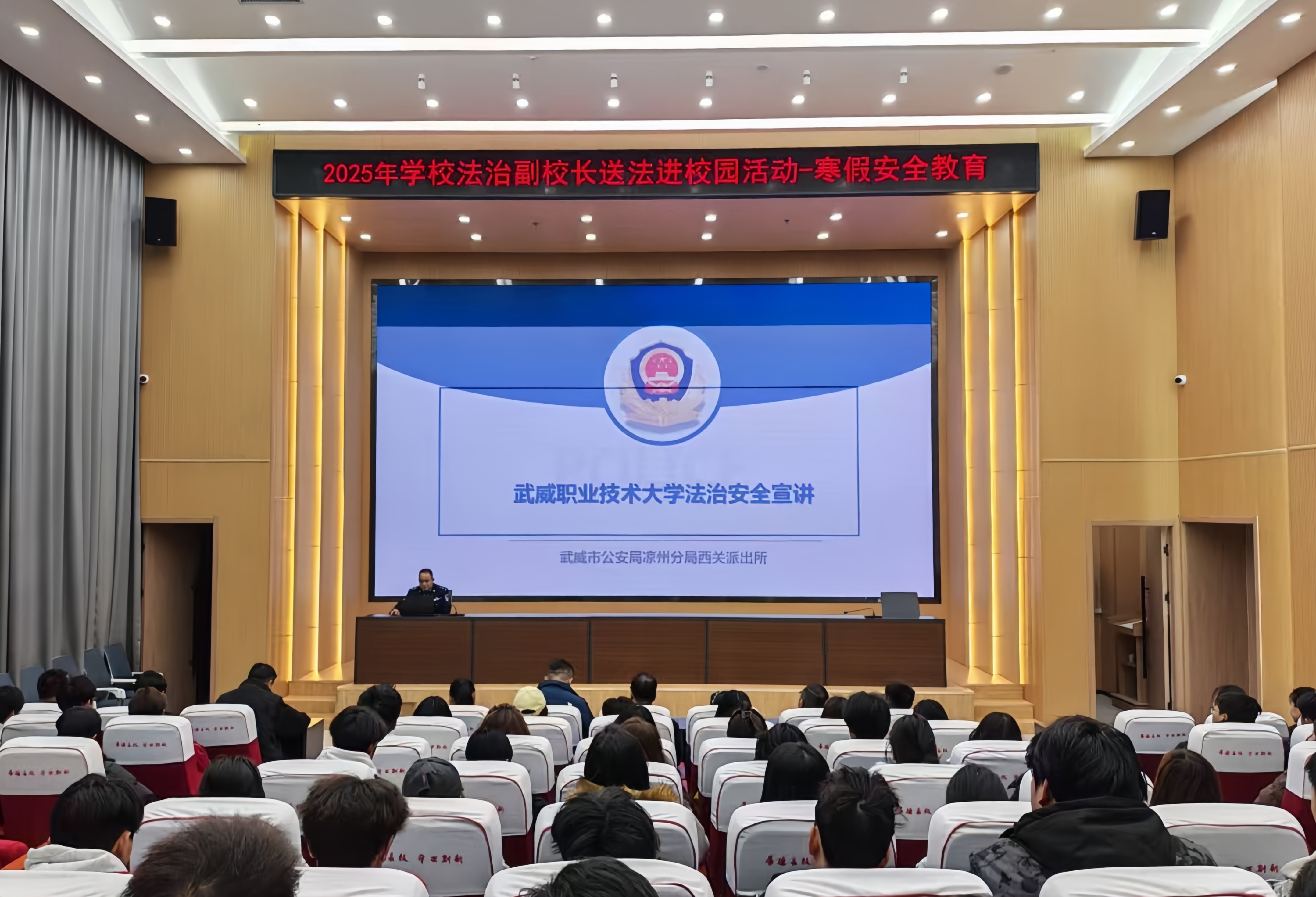 為切實(shí)增強(qiáng)師生法治觀念與安全防范意識(shí),筑牢校園安全防線,12月30日,學(xué)校法治副校長(zhǎng)送法進(jìn)校園專題宣講活動(dòng)在能源科技樓一樓學(xué)術(shù)報(bào)告廳舉行,各學(xué)院輔導(dǎo)員及學(xué)生代表共計(jì)110余人參加活動(dòng)。