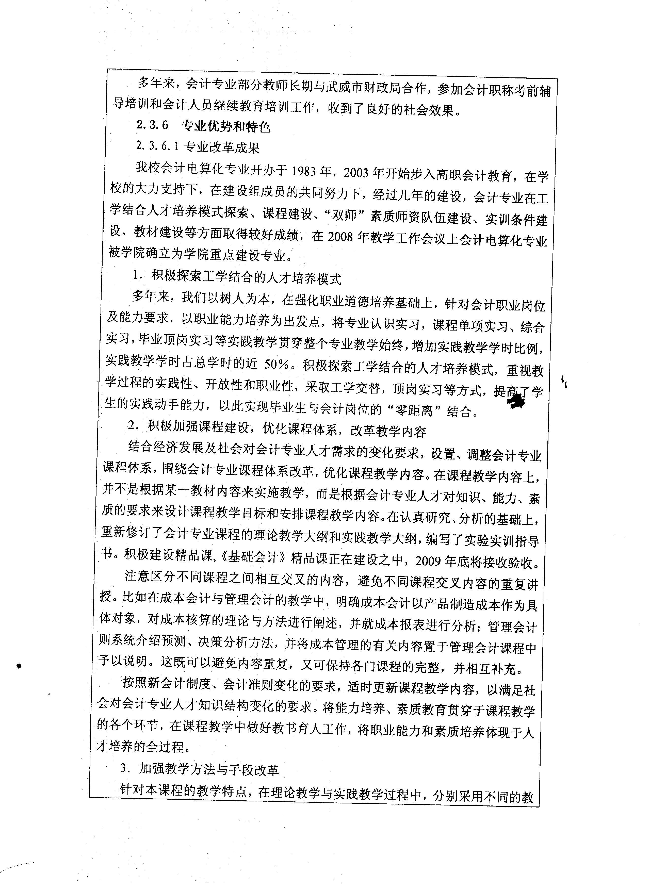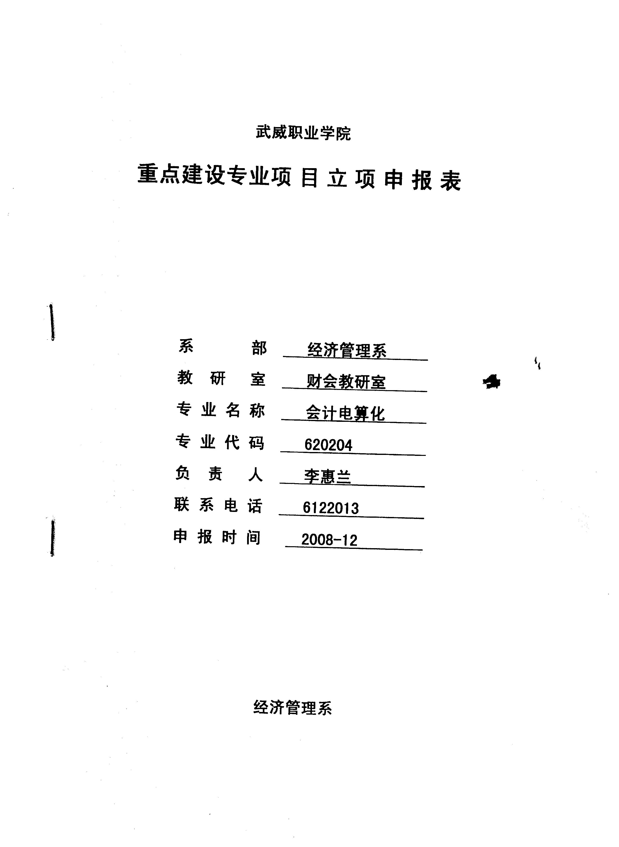 院級(jí)重點(diǎn)專業(yè)——會(huì)計(jì)專業(yè)申報(bào)表