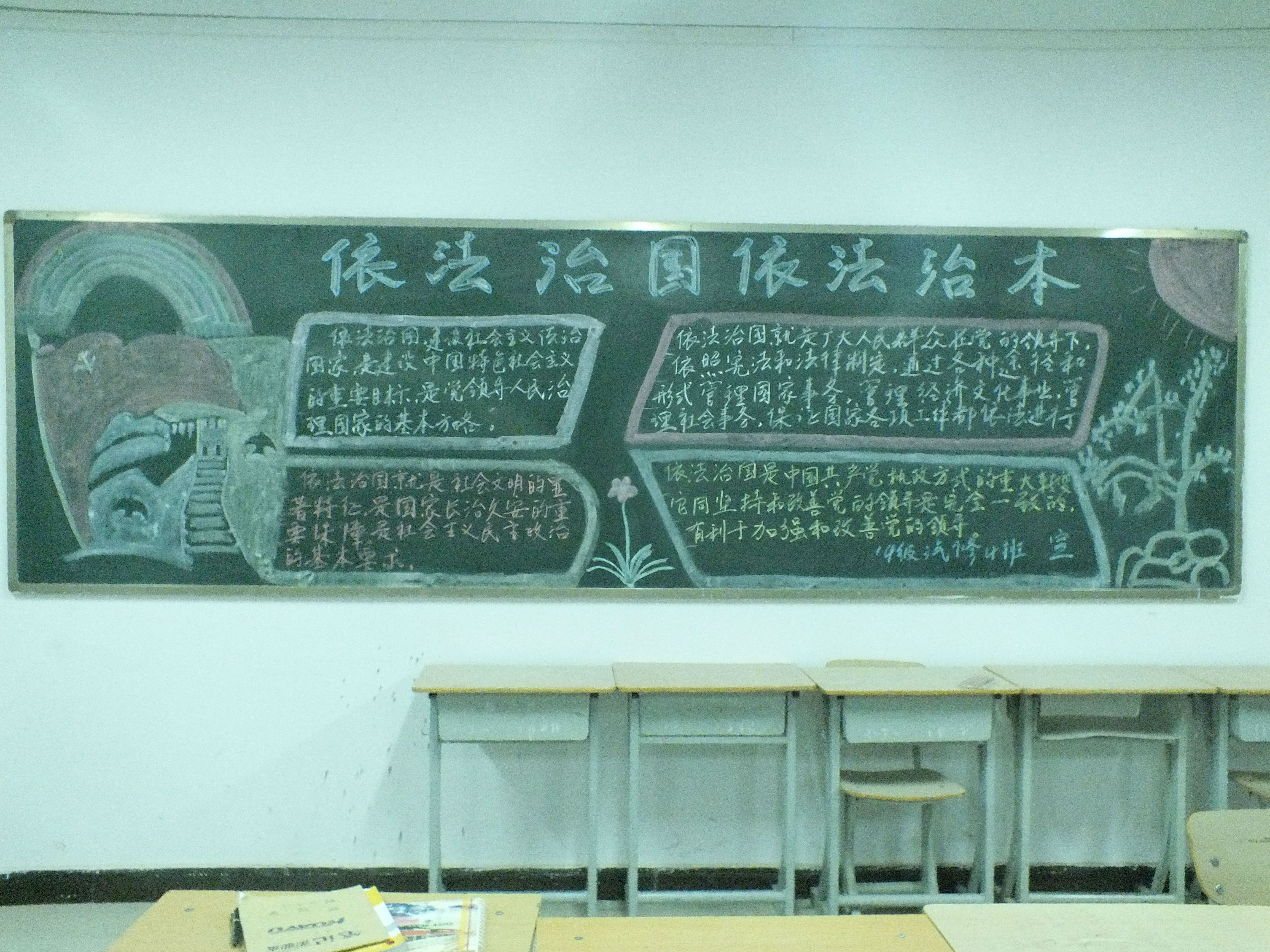 各班通過(guò)召開普法教育主題班會(huì);“普法校園行”為主題黑板報(bào);舉辦“弘揚(yáng)憲法精神、建設(shè)法治校園”專題講座等形式向同學(xué)們宣傳十八屆三中、四中全會(huì)和習(xí)近平總書記系列重要講話精神;宣傳法治教育在推進(jìn)法治校園建設(shè)中的基礎(chǔ)作用;宣傳開展法治教育的新思路、新方法、新成效;宣傳深化法治文化、法治創(chuàng)建、依法治理等活動(dòng)的成功經(jīng)驗(yàn)、典型實(shí)例和亮點(diǎn)工作;宣傳法治教育工作中涌現(xiàn)的先進(jìn)人物和學(xué)法守法典型等。