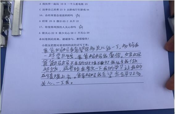 最后志愿者們坐下來(lái)相互探討提出建議:父母努力承擔(dān)孩子的教育責(zé)任。父母雖在外,但是還是應(yīng)該采取多種方式,多與孩子的溝通交流,以了解孩子的生活、學(xué)習(xí)、情感變化,比如多用電話聯(lián)系。父母是孩子的第一任老師,因此父母的教育是對(duì)孩子影響最大的,因此父母應(yīng)該多關(guān)心孩子,如果不能?;丶?,則應(yīng)該向孩子的老師說(shuō)明自己的情況,了解子女的發(fā)展變化,以共同商討教育孩子的策略和方法。同時(shí)也要加強(qiáng)關(guān)愛(ài)留守兒童的各類社會(huì)宣傳。充分發(fā)揮各媒體的作用,使更多的人加入到對(duì)留守兒童教育問(wèn)題的研究中來(lái),使各界各類人士共同來(lái)探討和研究,從而使留守兒童教育問(wèn)題得到切實(shí)的解決。