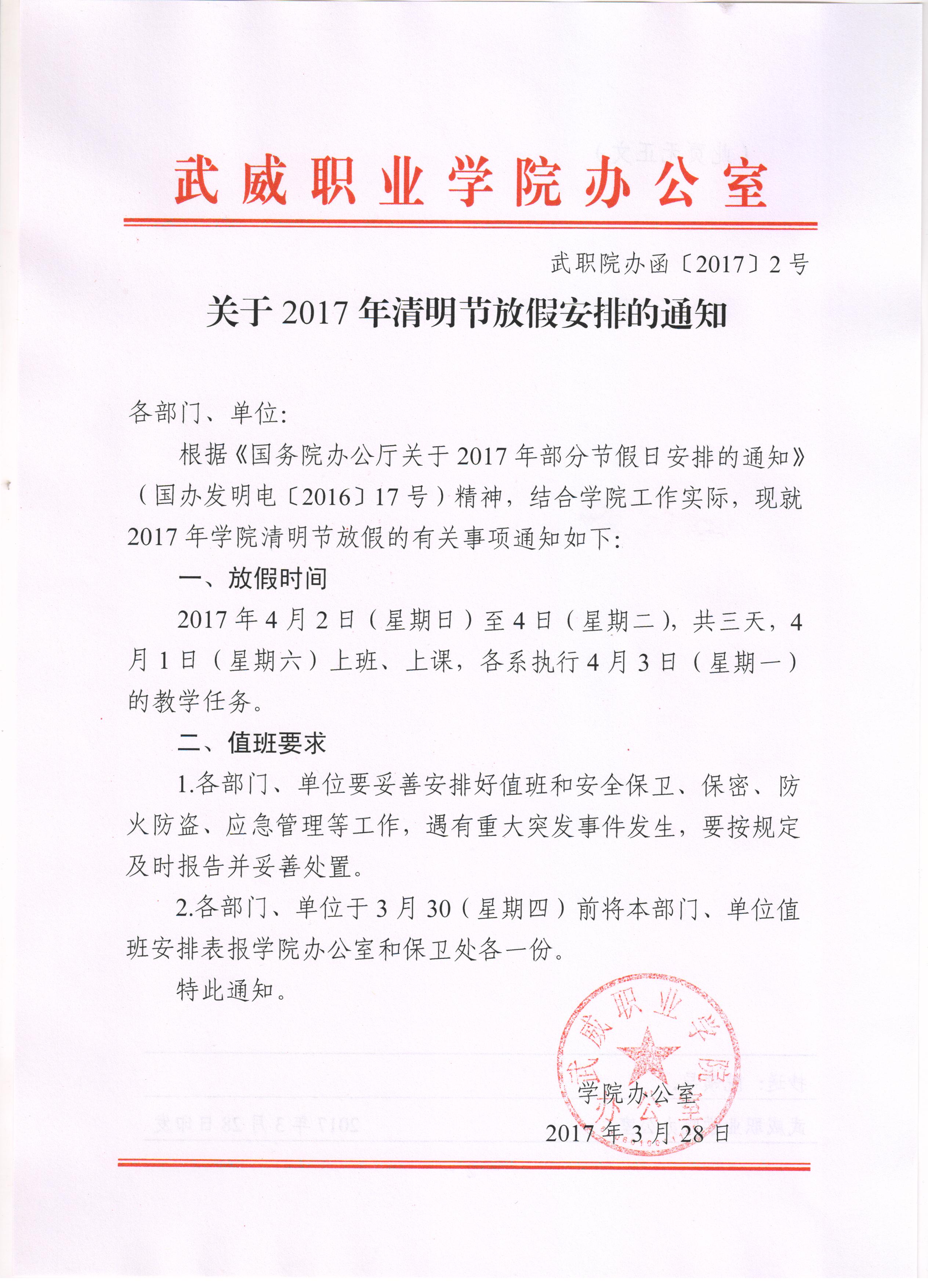 關于2017年清明節(jié)放假安排的通知