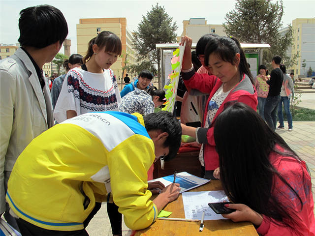 我系青年志愿者在校園設(shè)立了固定宣傳位,設(shè)計制作了展板,開展了“讓我們一起光盤吧”簽字征集活動,并在食堂餐桌上張貼光盤行動的小便簽,與前來就餐的同學(xué)互動。此外,志愿者還利用網(wǎng)絡(luò)社交平臺、微博、微信等新媒體進(jìn)行宣傳,深化了青年志愿者精神、踐行了文明新風(fēng)、收到了良好的效果,。