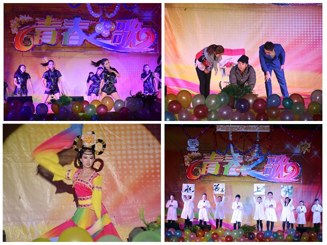 本次晚會以“青春之歌,歡送畢業(yè)生”為主題,共表演了17個精彩節(jié)目。晚上7點整,開場舞《倍兒爽》、《小蘋果》為整臺晚會拉開了帷幕。在晚會上,《格桑拉》、《吉祥謠》及《青春踢踏》等少數(shù)民族舞蹈,體現(xiàn)了五十六個民族大團結(jié),互相共融的感情;《感恩的心》表達了學生們對老師一年來孜孜不倦、淳淳教誨的感恩之情;《天下父母心》表達了對父母的養(yǎng)育之恩的感謝;舞蹈《驚鴻舞》和《The boys》等給觀眾帶來了別樣的風情,展現(xiàn)出青年學子活力青春;大型舞蹈《致那些年逝去的青春》和《夢回敦煌》帶給觀眾視覺盛宴;舞蹈《串燒》結(jié)合了幾首近幾年流行的膾炙人口的歌曲,將不同舞蹈串燒一起。青春現(xiàn)代舞《Expect》將整個晚會推向高潮。