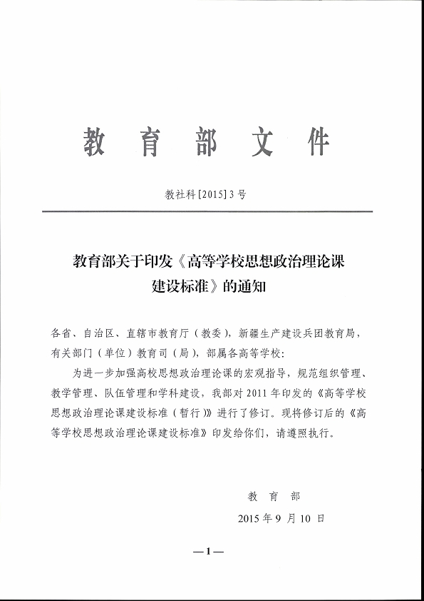 關(guān)于印發(fā)《高等學(xué)校思想政治理論課建設(shè)標(biāo)準(zhǔn)》的通知