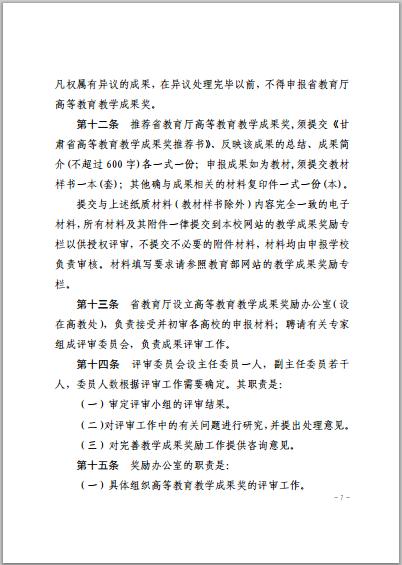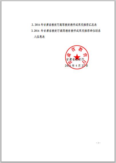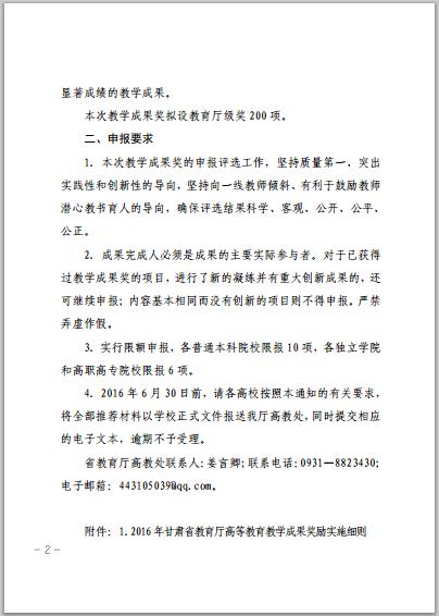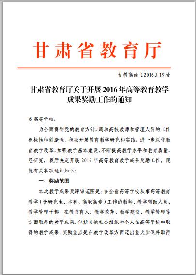 甘肅省教育廳關(guān)于開展2016年高等教育教學(xué)成果獎勵工作的通知