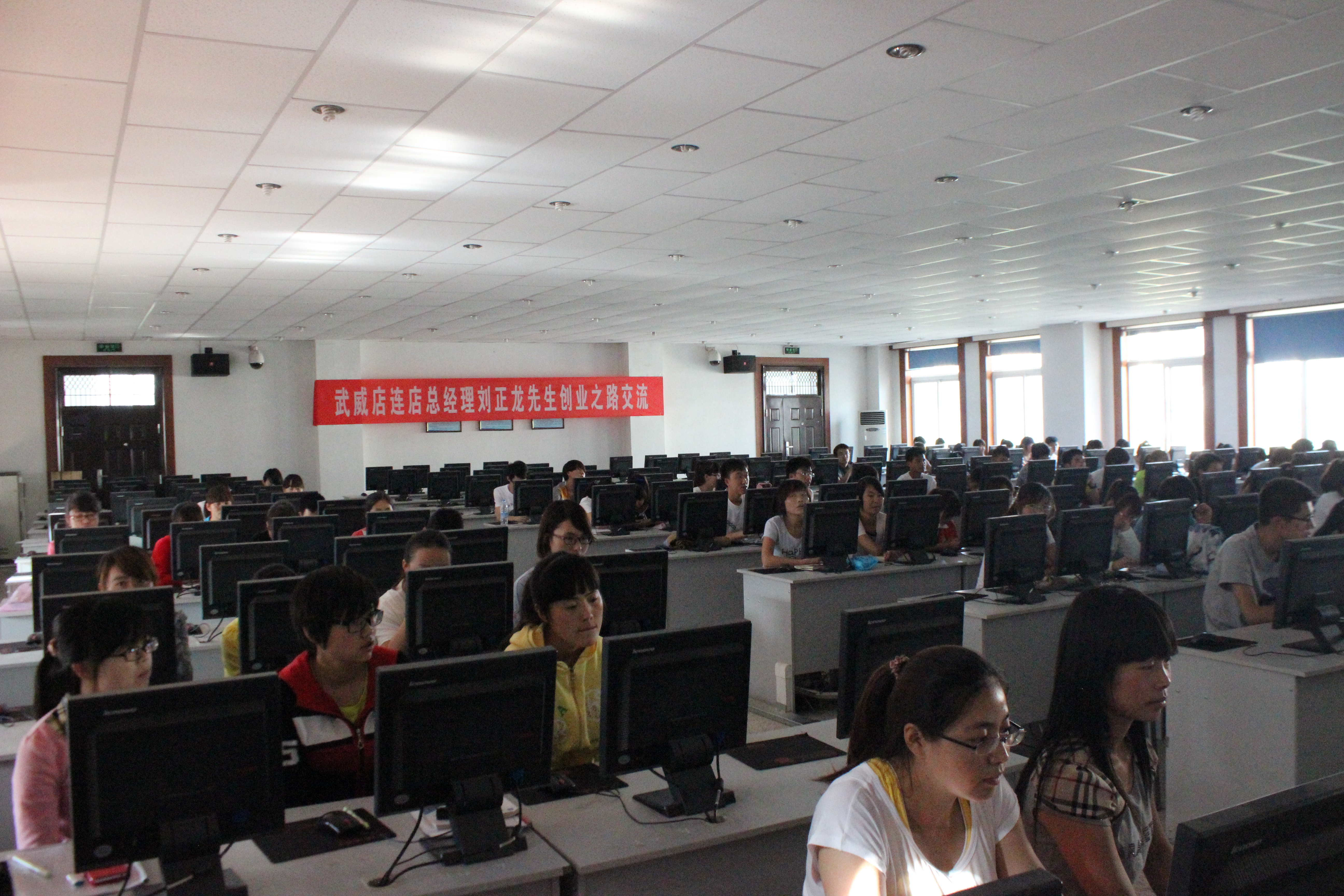 為進(jìn)一步幫助我系青年學(xué)生樹立與市場(chǎng)經(jīng)濟(jì)相適應(yīng)、與轉(zhuǎn)變經(jīng)濟(jì)發(fā)展方式相適應(yīng)、與自身特點(diǎn)相適應(yīng)的務(wù)實(shí)就業(yè)觀念,指導(dǎo)青年學(xué)生正確設(shè)計(jì)自己的職業(yè)規(guī)劃,激發(fā)他們自主就業(yè)創(chuàng)業(yè)意識(shí)和能力,6月19日下午5點(diǎn),電子信息工程系在學(xué)院十號(hào)機(jī)房舉辦了《創(chuàng)業(yè)路上的點(diǎn)滴》為主題的大學(xué)生創(chuàng)業(yè)講座。本次講座邀請(qǐng)了武威店連店打折網(wǎng)總經(jīng)理劉正龍先生為主講人,系團(tuán)總支書記唐宗舜老師主持,180余名青年學(xué)生參加了此次講座。