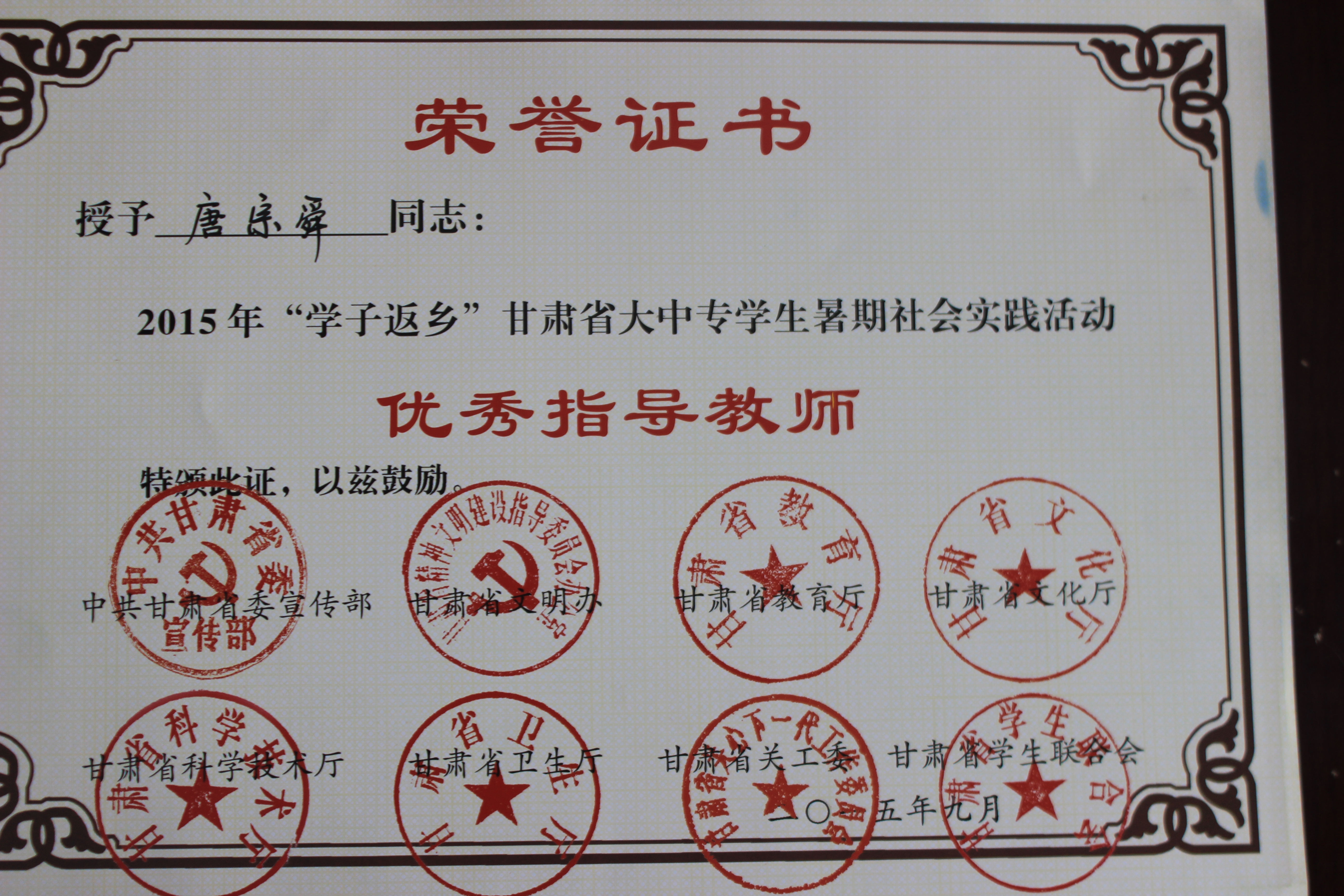 2015年“學子返鄉(xiāng)”甘肅省大中專學生暑期社會實踐活動-優(yōu)秀團隊