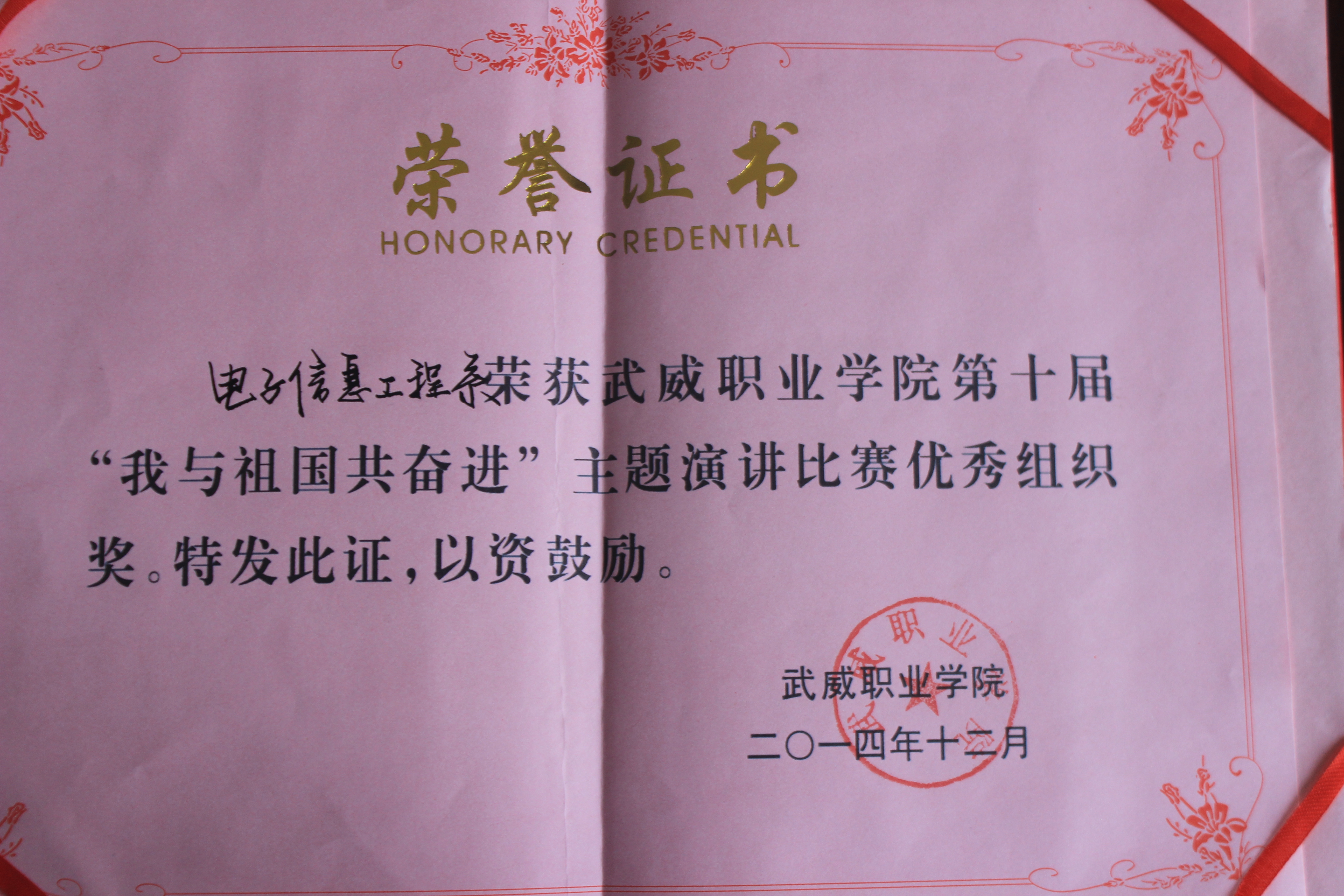 第十屆“我與祖國共奮進”主題演講比賽-優(yōu)秀組織獎