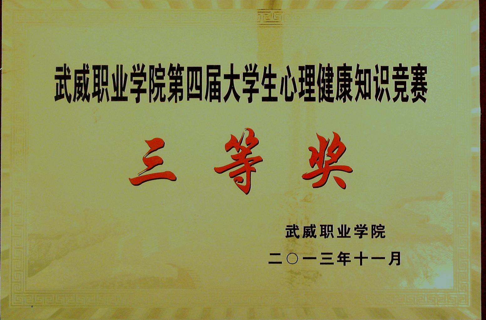 第四屆大學(xué)生心理健康知識競賽三等獎(jiǎng)
