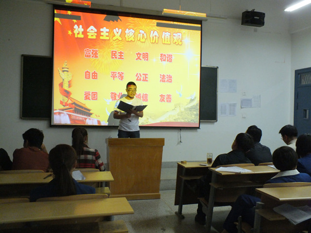 為深入學(xué)習(xí)貫徹黨的十八大精神和習(xí)近平總書記系列講話中關(guān)于大力推進(jìn)社會主義核心價(jià)值體系建設(shè)的要求,積極響應(yīng)院團(tuán)委的號召,我系于4月14日組織師生在4號教學(xué)樓313教室開展了“社會主義核心價(jià)值觀引領(lǐng)我成長”主題演講比賽。